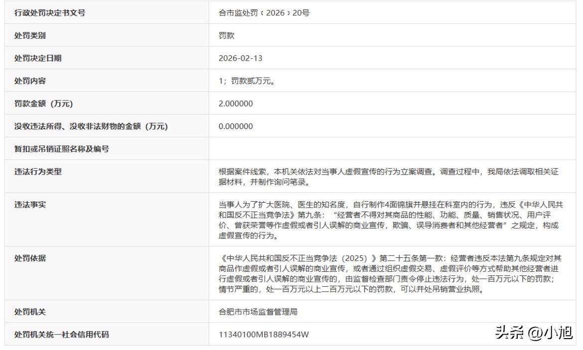 安徽有家医院,墙上的锦旗是自己做的! 4面锦旗,红底黄字,“医德高尚”、“妙手回春”,端端正正挂在安徽中医药临床研究中心附属医院的科室里。患者进进出出,抬头就能看见这些“患者心声”。问题是,这些话不是患者说的,是医院自己写给自己看的。 市监局的人来检查,一看就发现问题。查来查去,4面锦旗全是医院自行制作,没有一面是患者送的。按照《反不正当竞争法》,这属于虚假宣传,罚款2万。几十块钱的成本,换来2万罚单。 有人觉得医院冤枉,不就挂几面旗子吗,又没害人。但仔细想想,医院是什么地方?是患者把命交出去的地方。今天能在锦旗上造假,明天病历上会不会动手脚? 这家医院可不是什么野鸡诊所。公开信息显示,它是二级综合性中医医院,安徽省医保定点医院,合肥市城镇职工医保定点医院,头衔一大堆,正规得不能再正规。就是这样一家正规医院,不好好琢磨怎么治病救人,反而琢磨起怎么给自己贴金。 问题来了,一家正规医院,为什么要自己给自己送锦旗? 答案可能很扎心:因为真实的患者口碑,撑不起这家医院的门面。因为真正的医术水平,留不住患者的心。墙上的锦旗不够多,那就自己动手凑;患者的好评不够用,那就自己写自己夸。 查一下这家医院的底细,会发现4面假锦旗只是冰山一角。去年就有患者投诉过度医疗、不当诊疗、误导消费。风险信息里更精彩,3条裁判文书,14条涉诉关系,1条开庭公告,2条立案信息。 这串数字比那4面假锦旗更能说明问题。一家医院频繁被告上法庭,涉及的案件不会是什么好事。患者愿意告医院,那得是多大的怨气?医院如果真的“医德高尚”、“妙手回春”,怎么会惹来这么多官司? 按照《医疗机构投诉管理办法》,医疗机构应当“主动接受社会监督”、“将投诉管理纳入患者安全管理体系”。但这家医院的做法恰恰相反——不是主动接受监督,而是主动制造假荣誉;不是把投诉当作改进的机会,而是用假锦旗掩盖真实的医患矛盾。 更讽刺的是,按照规定,二级以上医疗机构应当“定期汇总、分析投诉信息,梳理医疗管理、医疗质量安全的薄弱环节,落实整改措施,持续改进医疗质量安全”。但这家医院有14条涉诉关系,却还在琢磨怎么造假锦旗。这说明什么?说明他们根本没把投诉和官司当成改进的动力,反而想走捷径糊弄下一批患者。 再往深了想,这4面假锦旗背后,藏着一个更残酷的现实:现在的医疗市场竞争激烈,医院为了活下去,什么招都使得出来。民营医院要生存,要赚钱,要跟公立医院抢患者,压力确实大。但压力大就能造假吗? 《安徽省医疗纠纷预防与处置办法》明确规定,医疗机构应当“建立医疗质量监控和评价制度、医疗安全责任制度、过错责任追究制度”。这家医院倒好,制度不落实,投诉不处理,官司不反思,反倒把心思花在做假锦旗上。 这就好比一个学生,不好好学习,考试作弊被抓,还怪老师太严格。问题是,医院不是学校,患者不是监考老师。患者走进医院,是来治病的,不是来配合医院演戏的。 那些冲着“二级综合性中医医院”、“医保定点医院”这些头衔去看病的患者,才是这场自导自演里最该心疼的人。他们以为遇到了正规医院,以为墙上那些锦旗是真实的患者评价,结果呢?全是假的。 2万块钱罚款对一家医院来说不痛不痒。但这4面假锦旗,让人看清了这家医院最真实的底色。花钱做假锦旗容易,把真本事练好难。与其琢磨怎么给自己贴金,不如想想怎么把患者治好。 大家怎么看医院自己给自己送锦旗这事?你去医院看病,会留意墙上的锦旗吗?