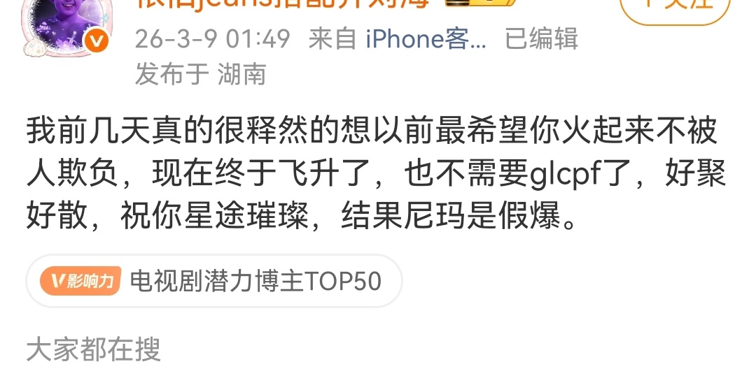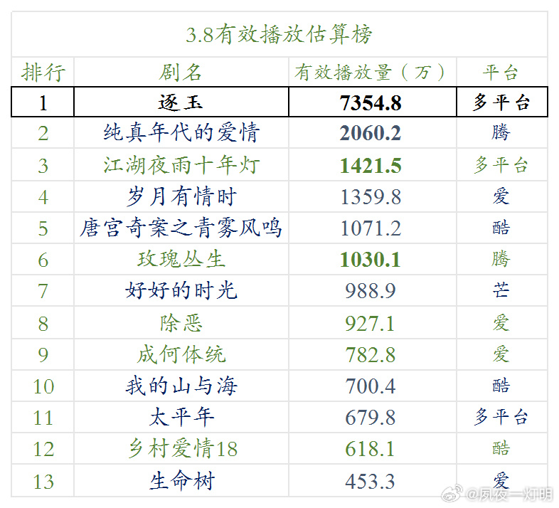 腾讯爱奇艺天龙人剧一秒一集就算播放量,其他人的剧要不跳片头片尾看完一整集才算播放量。显失公平却被放在一张表里比数据。怪不得连路人都逆反了。逐玉数据异常