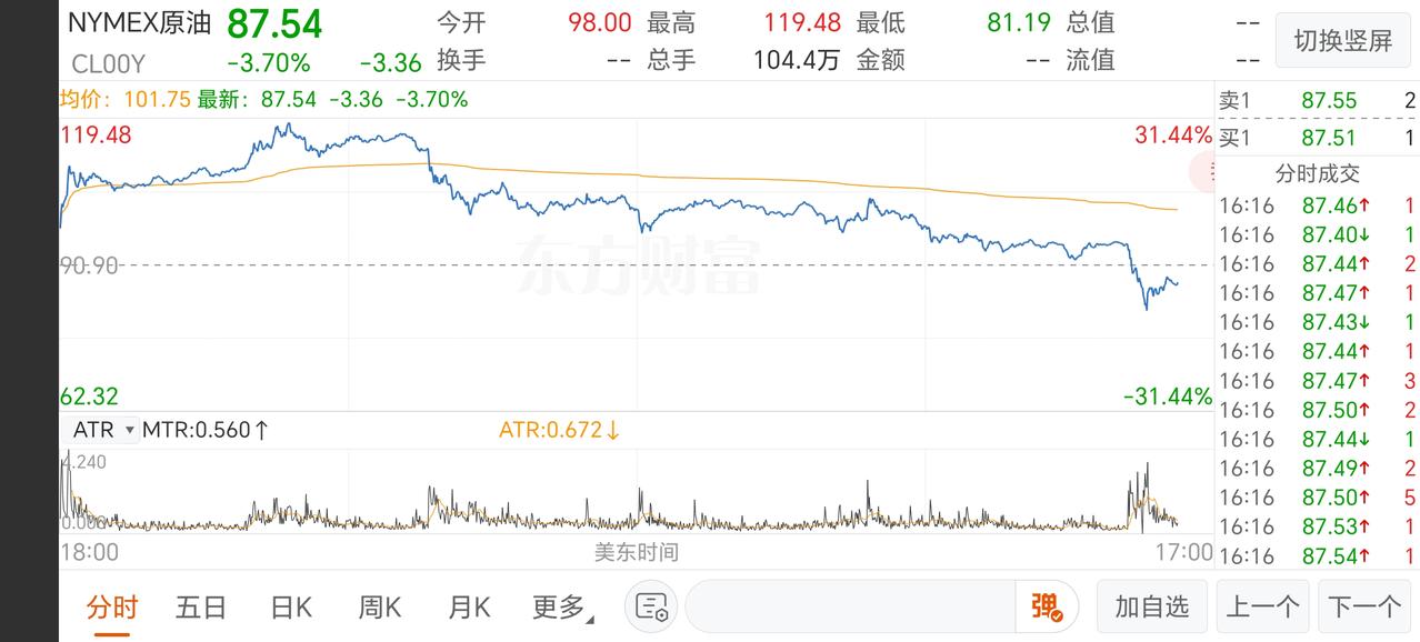 重磅!特朗普一声:对伊朗战争“已基本结束”。美股三大指数快速拉升!国际原油价格则由涨约4%直线下行到跌-8%左右!一天之内震幅约40个点。 3月9日,特朗普在电话采访中表示,“我认为这场战争已经基本结束,差不多了。” 特朗普的意思是,美以两国已经把伊朗的海军打烂,空军打残,通信也在战争中报废。是到了美国该收手的时候了。 恐怕还有两个主要的原因,特朗普憋在心里没有说出来:当地时间8日夜晚,以色列不按美以两国事先设定又伊朗的打击“范围。”以色列军队擅自行动,打击伊朗30多处油设施。炸得伊朗多处油设施爆炸,从而引发德黑兰满城发生大火。 事后特朗普很生气,指责以色列不该打击伊朗的油设施,从而推高国际油价。 另外特朗普9日还与普京通了个电话! 也许这才是特朗普下定决心提前结束以伊朗打击的主要原因。 估计特朗普也想得到,如果再不及时在收手,他极有可能被内塔尼亚胡拖入中东的“深渊”,拖到全世界的对立面,无法抽身。