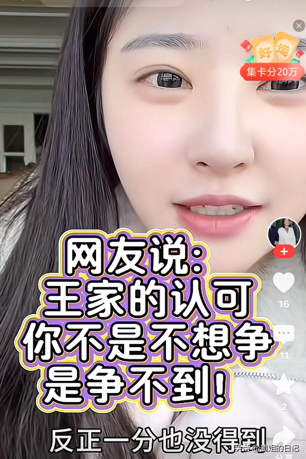 黄一鸣承认,他对王家的金钱不是没去争取,是争不到。 她说“作为孩子的父亲,没给过自己女儿生活费,我也不是没去争取,是争取不到,他从来没回应过我说的话,我也不怕你们笑话,但是,他不给我钱,我也要活着,闪闪的号46万粉丝,我的号100多万粉丝,我做的很成功”。 实际她认为自己很厉害,她有啥厉害的,她的流量都是王撕葱给的,如果不是给王撕葱生了闪闪,谁认识她呀。 你跟你妈就认钱,闪闪就是你们利用的工具,已经赚到钱,目的也达到了,就别得了便宜还卖乖了。