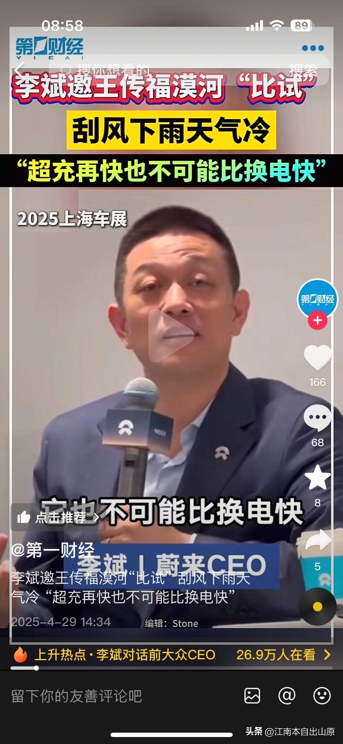 李斌放话:超快充再快,也没有换电快!车主:这才是电车补能的真相 兆瓦级闪充刷屏、9分钟满电出圈,新能源补能赛道吵翻了天。就在所有人以为超快充要一统江湖时,蔚来李斌在央视直接摊牌:超快充再快,也没有换电快。一句话戳破行业泡沫,也道出千万电车车主的真实痛点。 很多人只看纸面数据:超快充5分钟补能400公里,听起来碾压一切。可作为车主,我们算的从来不是充电那几分钟而是全流程的真实耗时。找桩、停车、下车插枪、扫码等待,遇上高温极寒,功率直接腰斩;节假日高速服务区,排队一小时起步是常态。就算桩就在眼前一套流程走下来,20分钟都算快。 换电则是另一番体验。蔚来第四代换电站2分24秒全自动完成,不用下车、不用熄火,吹着空调就换好满电电池。李斌说得直白:超快充拼的是功率,换电拼的是体系。这种确定性的快,是任何充电技术都给不了的安全感。 更扎心的是电池寿命。频繁超快充会让电池循环寿命缩短近40%,开几年续航跳水,二手车直接被砍价。而换电模式下,每块电池都经过专业检测养护,寿命延长至12年,接近车电同寿。老车主还能随时升级150度半固态电池,永远用上最新技术,这是充电模式想都不敢想的福利。 有人说换电站成本高、布局慢,但蔚来已经把换电站铺成了“新能源便利店”。春节长途,别人在服务区苦等充电,蔚来车主3分钟满血出发;零下40度极寒换电不受丝毫影响。数据不会骗人,蔚来车主80%的长途补能都选择换电,口碑早已说明一切。 李斌不是否定超快充,而是看清了补能的本质:快不是目的,省心、安心、不折腾才是。超快充是技术升级,换电是体验革命,两者本就不是非此即彼。 你站超快充还是换电?节假日被充电排队折磨过吗?评论区聊聊,你心中电车补能的最优解到底是什么?