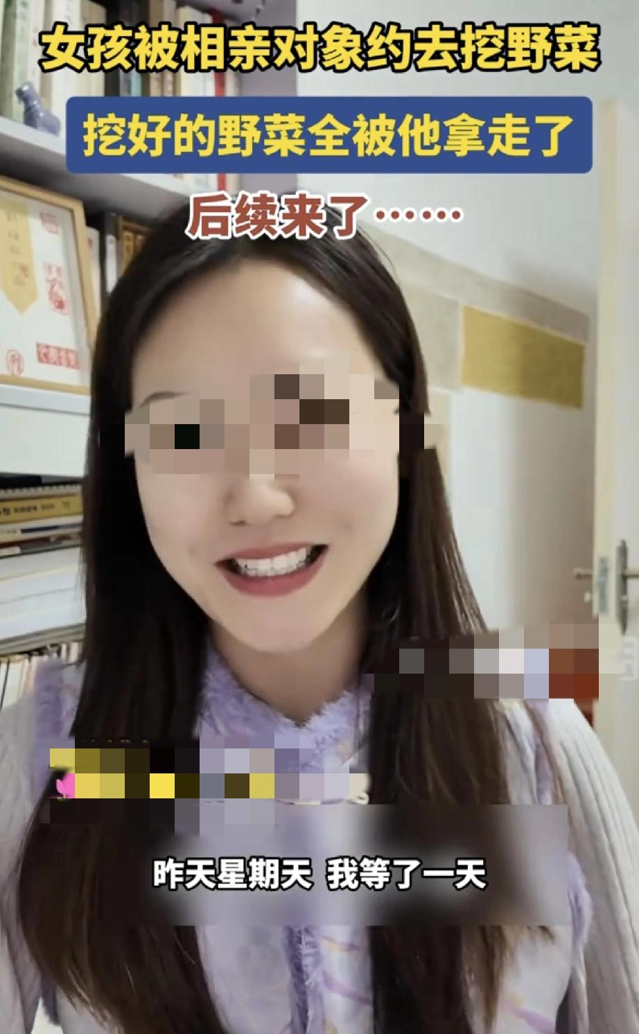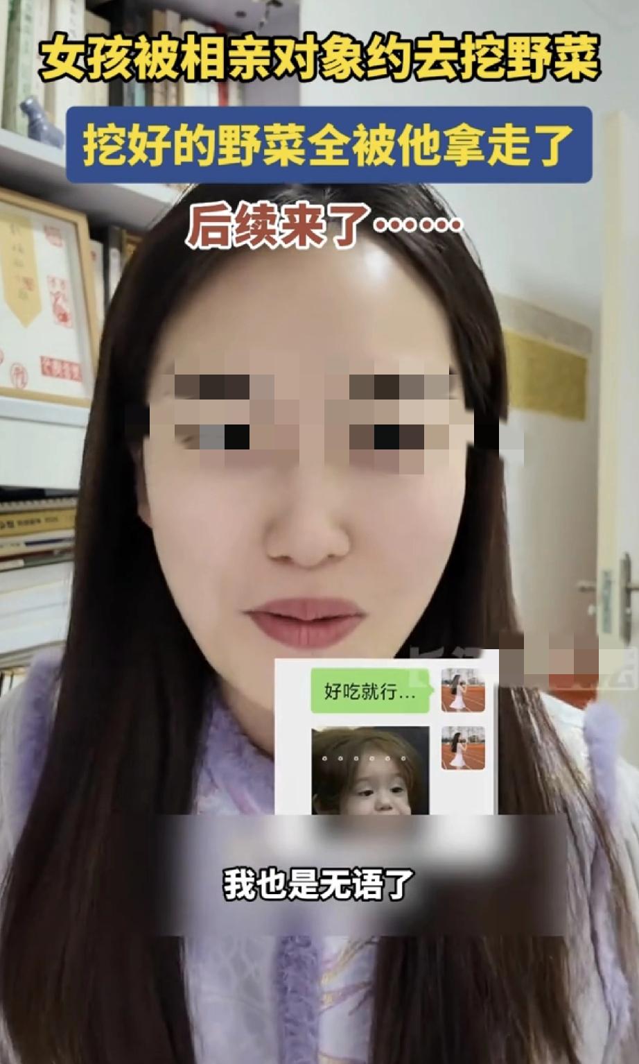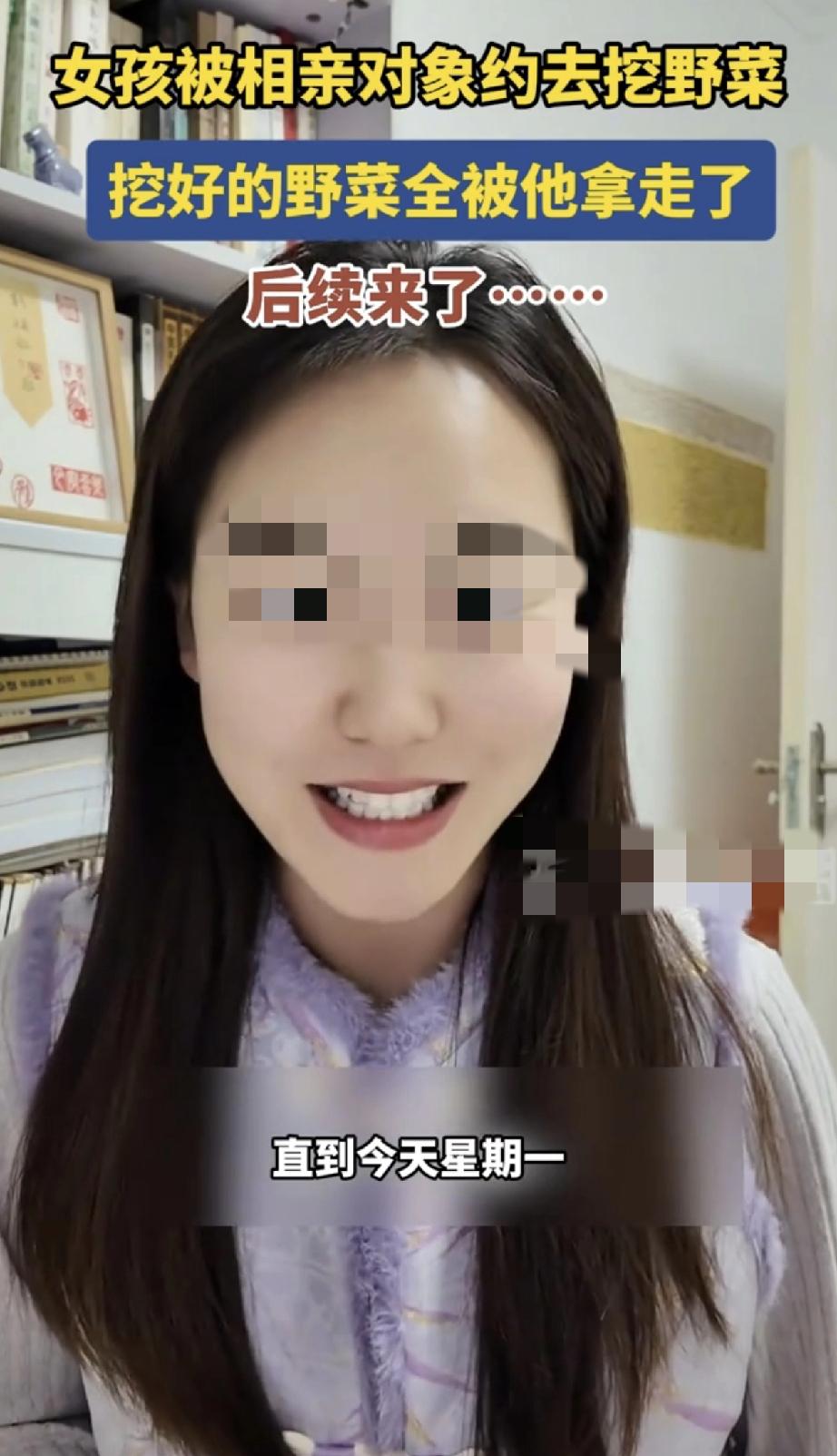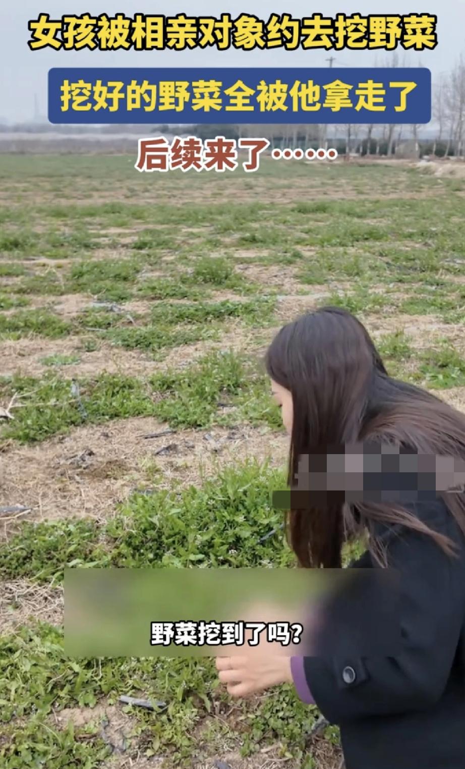 陕西咸阳,一女子发视频分享,自己被安排去相亲,结果相亲对象竟约着她去挖野菜。虽然