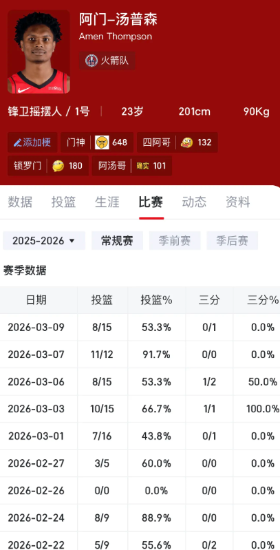 阿门保持这个状态到季后赛火箭能保底第二轮