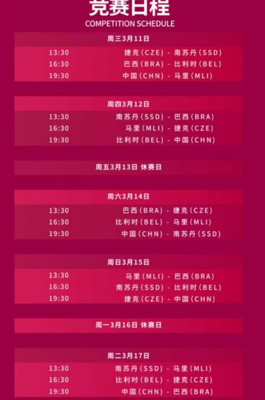 2026年女篮世界杯预选赛小组赛中国队11日黄金时间打响揭幕战 2026年在德国进行的女篮世界杯一共有16个国家参赛,第目前为止,比利时、美国、澳大利亚、尼日利亚已作为洲际冠军提前锁定世界杯4个席位;德国作为东道主也已自动晋级。其余11个名额由四个赛区竞争产生,每个小组6支球队,小组赛结束,四个小组的前两名直接获得参赛资格。四个小组里三个成绩好的第三名也获得参赛资格。四个小组的分组情况如下: A 组(在中国武汉举行): 中国、比利时、巴西、捷克、马里、南苏丹 B 组(在波多黎各圣胡安举行):新西兰、波多黎各、美国、塞内加尔、意大利、西班牙 C 组(在土耳其伊斯坦布尔举行):匈牙利、土耳其、阿根廷、澳大利亚、加拿大、日本 D 组(在法国里昂举行): 哥伦比亚、菲律宾、德国、韩国、法国、尼日利亚 中国女篮5场比赛时间安排如下: 第一场:中国女篮对阵马里女篮,时间2026年3月11日19:30 第二场:中国女篮对阵比利时女篮,时间3月12日19:30 第三场:中国女篮对阵南苏丹,时间3月14日19:30 第四场:中国女篮对阵捷克,时间3月15日19:30 第五场:中国女篮对阵巴西,时间3月17日19:30 中国女篮12人名单:李月汝、韩旭、张子宇、陈明伶、唐子婷、罗欣棫、张茹、杨舒予、陈玉婕、张曼曼、王佳琦、王思雨。