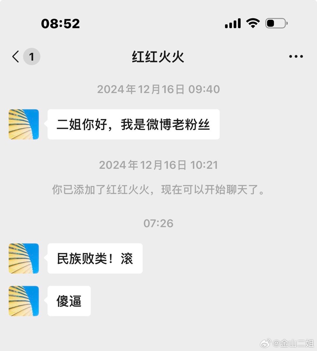 就因为我昨天发的微博,自称我老粉的货,开始骂我!给我上纲上线!“民族败类”,搞不懂,你是啥民族?ysl?伊朗是你的祖国? 右边👉我微信,欢迎来骂!不骂你是孙子!