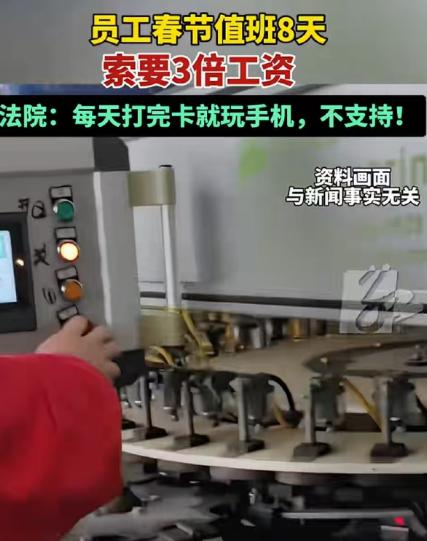 值班不等于加班?江苏无锡,男子为了挣3倍工资,大年初一到初八上了8天班,连家都没回,节后他找公司要8天的3倍工资6240元,可公司认为值班不等于加班,还说:你玩了8天手机,又没干活,哪有脸要3倍工资?  大年初一到初八,本应是家家户户团圆、热闹非凡的日子,但在江苏无锡,有一名男子却选择了另一条路——连续8天在公司值班,连家都没回。 原本,他心里盘算着:“春节是加班高峰,公司一定会按3倍工资算加班费,干满这8天,我的钱袋子就鼓起来了。” 李某从腊月二十九开始,就踏进了办公室,直至正月初八才踏出。8天里,他几乎住在公司宿舍,早出晚归,餐食简陋,夜晚加班至深夜。 “为了这点钱,我连回家见父母的机会都放弃了。”李某回忆道。窗外是灯火辉煌的城市春节夜景,他却只能望着办公室的白炽灯发呆。 每天的值班工作,主要是监控系统运行状态、处理客户简单请求和维护数据备份。工作量并不算大,但精神压力不小,每隔几小时就得查看系统日志,生怕出现问题影响公司声誉。 春节过后,李某如愿拿起了加班工资申请表,计算出自己应得的3倍工资共计6240元。他带着表格找到公司财务,希望能一次性结清。 然而,公司却拒绝了。公司负责人说:“你值班不等于加班,你也没有真正处理多少任务,8天里你还玩手机,这笔钱我们不打算发。” 李某听后愣住了。他觉得自己付出了时间和精力,即便是轻松值班,也是为公司承担了节日期间的责任。可公司一句“你没干活”,让他觉得自己的努力被彻底否定。 李某不甘心,先后向当地劳动仲裁机构提出诉讼,要求公司支付春节期间的加班工资。 然而,一审法院认为,公司安排的值班性质属于“待命”,并非正式工作,且李某在值班期间有娱乐时间,工作强度并不明显,因此不支持其请求。 李某不服,又提起二审。二审法院维持原判,判定“值班待命不等同于加班工作”,李某的诉求依旧未被采纳。 “我觉得非常冤枉,明明节日期间我在公司呆着,就是为了公司不出事,怎么就说我没干活呢?”李某对媒体说道,眼里带着不甘和无奈。 案件在网上曝光后,引发了大量网友关注和讨论。支持李某的人认为,值班也是劳动,公司应当按劳动法规定支付加班工资。 “就算没事干,也牺牲了节日与家人的团聚,这时间成本不比干活少。”一名网友评论道。 反对者则表示,值班不等于连续劳动,能玩手机说明并非完全投入,“想拿加班费,就得有真正加班行为,不然算哪门子?” 还有法律专业人士分析称,根据《中华人民共和国劳动法》和相关司法解释,春节期间的“加班”必须满足公司安排有具体工作任务,并且员工实际付出劳动。 如果只是待命、看着系统或者偶尔处理事务,不算真正的加班,法律上公司不必支付3倍工资。 这个事件引发了更深层次的社会讨论:在现代职场中,节假日的值班制度如何兼顾企业利益与员工权益? 一些职场观察者指出,很多企业在节假日期间实行“待命值班”,不明确加班工资标准,容易引发劳动者心理不平衡。员工花费时间、放弃休假,却得不到经济补偿,容易形成怨气。 李某坦言:“8天没回家,不是我想表现多么敬业,而是想着多挣点钱。没想到法律和公司都站在了另一边。” 另一方面,也有人提醒劳动者要了解公司规章制度和劳动法规定,明确自己值班的性质、是否有加班工资承诺,以免发生类似纠纷。 春节值班本是企业与员工之间权利义务的协调问题,但在李某身上却演变为一场“时间与金钱”的博弈。他8天的节日孤守,换来的却是法院的驳回和网络舆论的两极化。