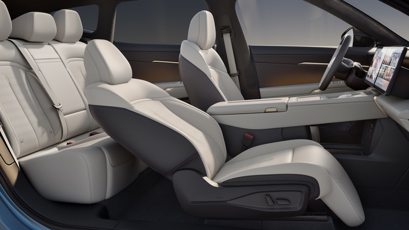 3月9日,大众旗下全新纯电中大型SUV——与众08正式发布了内饰官图。新车全面应用了800V高压技术,并确认将于本月(3月)内正式上市。 与众08前排采用10.25英寸液晶仪表与双14.96英寸联屏的组合,并内置大语言模型赋能的AI智能助手。全车大面积包覆Nappa真皮,副驾配备带腿托的14向电动调节及10点气动按摩。后排则提供折叠桌板、靠背磁吸接口、10°靠背调节及座椅加热功能。车顶配有1.74㎡智能调光天幕,搭配支持7.1.4声道的20扬声器音响系统。 与众08采用全新设计语言,狭长上扬的日行灯搭配发光的中央大众LOGO,极具辨识度与运动感。车身长宽高分别为5000/1954/1672(1688)mm,轴距高达3030mm,空间表现十分优异。 动力上,与众08搭载最大功率230kW的驱动电机。电池提供82.368kWh和95.04kWh两种容量,对应带来630km、700km和730km三个续航版本。智能化方面,新车配备了支持“车位到车位”全场景功能的L2级高级驾驶辅助系统,并支持整车OTA升级。