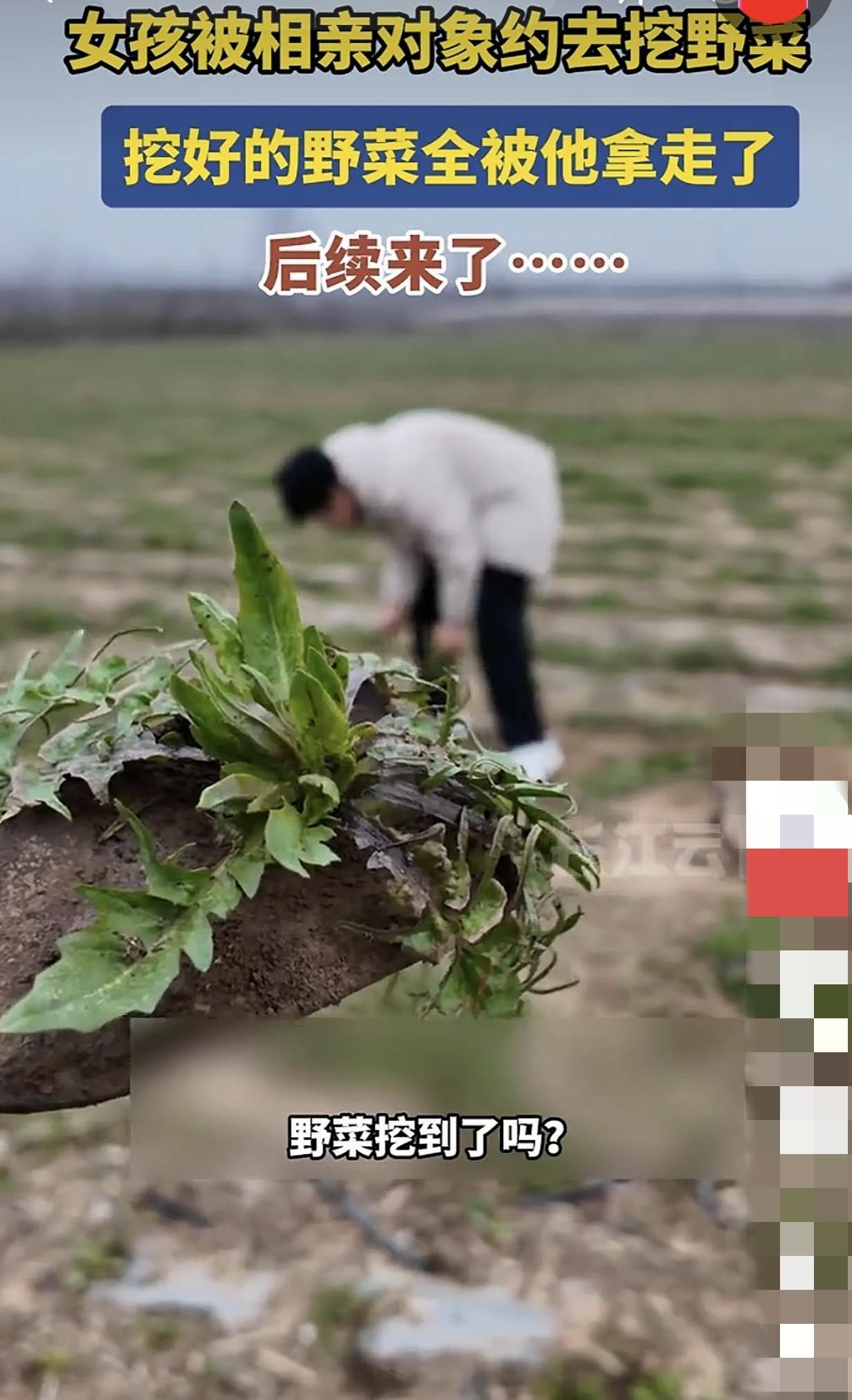 全网最奇葩的相亲!陕西咸阳,张女士经人介绍去相亲,对方不约吃饭、不看电影,反倒主动提议一起去郊外挖荠菜。张女士本以为遇上了不铺张、会过日子的踏实人,欣然赴约,结果忙活大半天,男生竟把荠菜全拎走了,后续操作更是让她当场无语灭灯。网友:这真是凭实力单身! 俩人初次见面,男生 178cm 的身高、白净的长相,给张女士留下了不错的印象。一听挖荠菜的约会提议,她更是对男生多了几分好感,觉得这人不浮躁,是个能好好过日子的。 到了郊外的田里,俩人蹲在地里忙活了整整半天。张女士全程认真挑拣,怕挖错了品种,还特意跟路过的村民反复确认,才放心把荠菜装进袋子里。 半天下来,俩人收获了满满一大袋荠菜,张女士心里还挺有成就感,想着回去好歹能分点尝尝鲜。 可让她万万没想到的是,准备回家的时候,男生直接拎起满满一袋子荠菜,转身就放进了自己车的后备箱,一棵都没留给她。 张女士当场就愣在了原地,又尴尬又心寒,原本攒的那点好感,瞬间荡然无存。 更让她无语的还在后面。两天后,男生主动发来消息,附上了荠菜疙瘩的图片,还语气轻松地炫耀:“你看,我妈用咱们挖的荠菜做的荠菜疙瘩,特别好吃。” 自己忙活大半天,连味儿都没闻着,对方不仅心安理得独吞了所有成果,还特意发来炫耀,张女士又气又好笑。她直言,自己等了一天,还想着对方会不会送点荠菜疙瘩或者饺子过来,结果就等来一句炫耀。 最后她无奈地唱起了歌,用 “我用情付诸流水,爱比不爱可悲” 吐槽这场离谱的相亲,干脆利落地表示:算了算了,灭灯吧灭灯吧。 这事发到网上,网友们也被这波操作逗乐了。有人说,我以为后续是他做好了给你送过来,结果就只是发个图炫耀,真是凭实力单身。也有人说,挖一次野菜就能看清一个人,这波太值了,总比在一起之后才发现他自私要强。还有人调侃,相亲能不能成不知道,荠菜疙瘩他是妥妥吃上了。 说实话,这事看着好笑,实则藏着相亲里最真实的人品考验。这从来都不是一把荠菜值多少钱的事,而是一个人的分寸感和尊重感。这场约会的初衷,本是两个人互相了解、拉近距离,可在男生眼里,似乎只收获了一袋免费的荠菜。 他全程只想着自己的所得,完全忽略了同行人的付出,哪怕是随口说一句分你一半,或者做好了送一点尝尝,都不会如此下头。 相亲约会,从来不是看你选的地方贵不贵、花不花钱,而是看细节里的人品。有人把约会当成互相了解的机会,有人却只把约会当成占便宜的途径。 一把荠菜,看清一个人的自私与狭隘,对张女士来说,及时止损,何尝不是一件幸事。