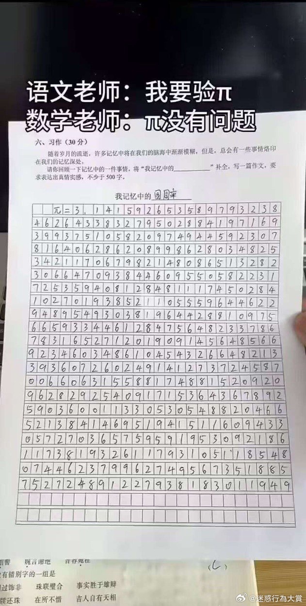 要是能背到小数点后800甚至1000位也不容易,只不过阅卷老师即便找到标准答案,光是对数也真的恶心死了。