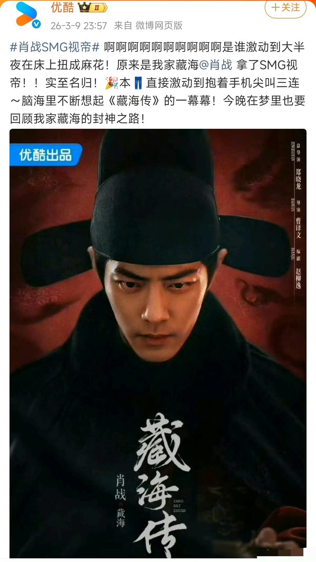 肖战SMG视帝,孙俪SMG视后!恭喜!
