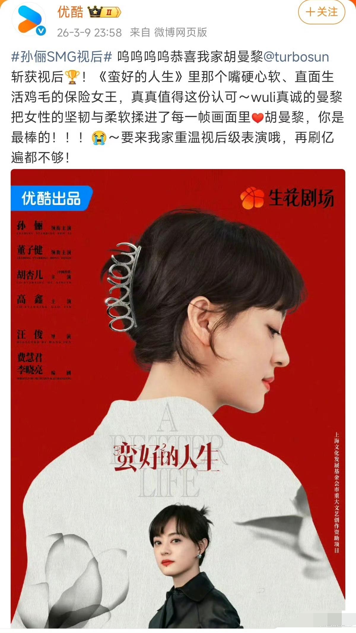 肖战SMG视帝,孙俪SMG视后 !恭喜!