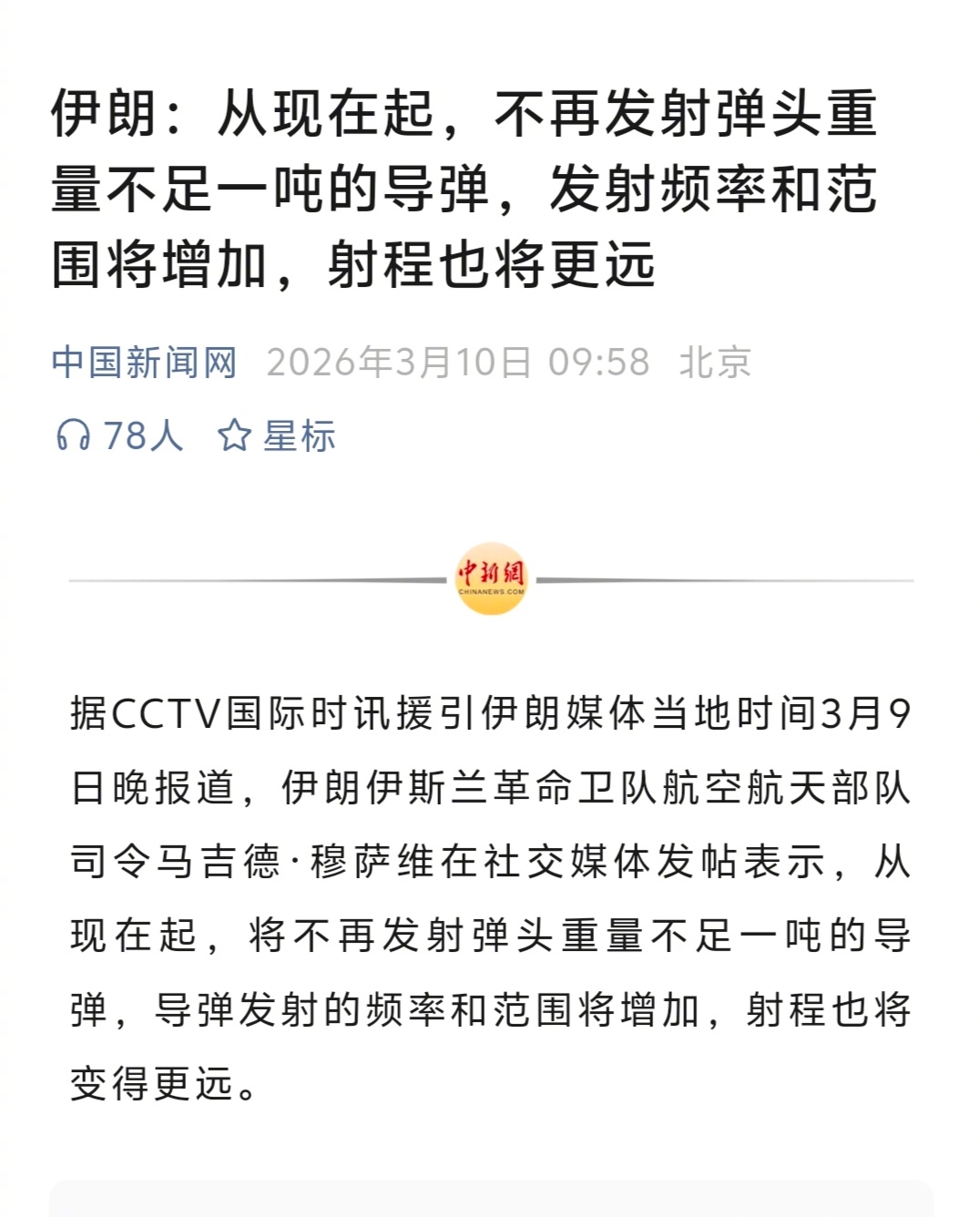 从现在起,将不再发射弹头重量不足一吨的导弹,导弹发射的频率和范围将增加,射程也将变得更远。