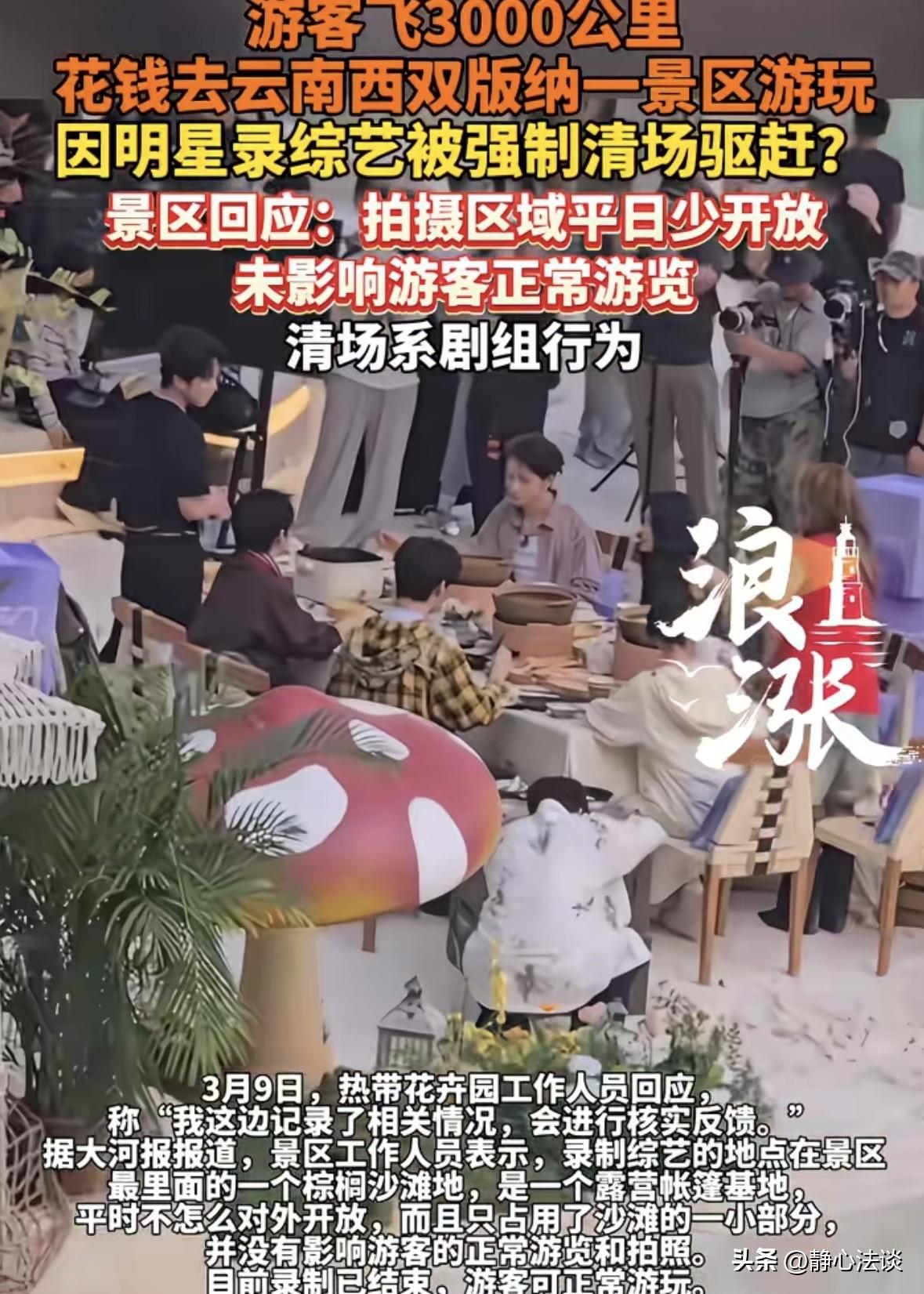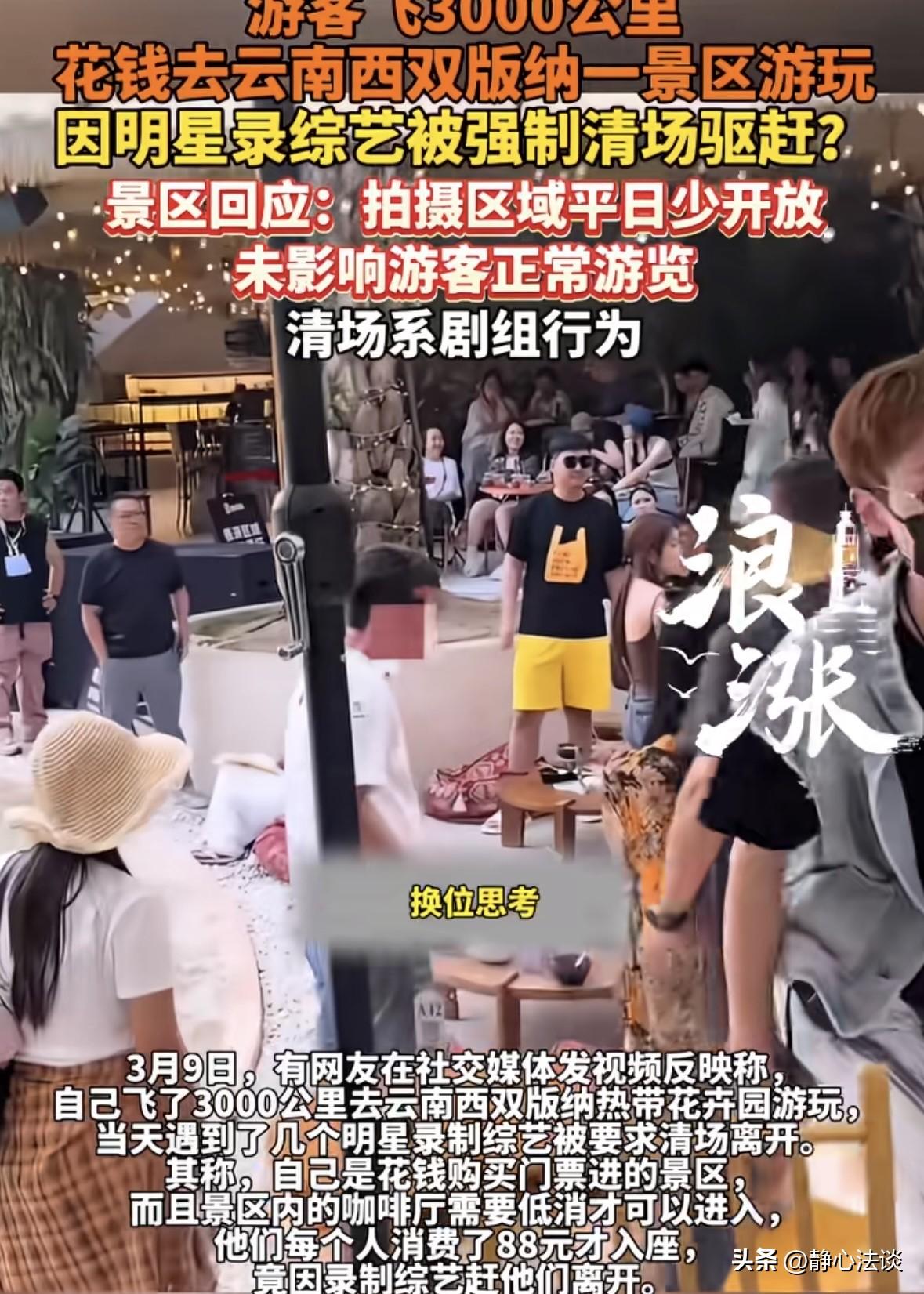西双版纳,女子飞3000公里去旅游,花几百块买了门票,又花88元喝咖啡入座,就在自己准备在景区里享受度假时光时,遇到几个明星录综艺,剧组一句解释都没有,当场就要清场,女子直接就不干了,明星来了跟我有什么关系,我花了钱的凭什么让我走!网友:忘了谁是你们的衣食父母! 女子攒了很久的假,终于可以去期待已久的西双版纳去旅游。 于是飞了3000多公里,到了目的地,她来到海边吹着海风,心里别提多满足。 女子买了门票入园,又特意找了景区里的咖啡厅,由于有抵消,女子又点了88块的饮品才坐下。 谁知道屁股还没坐热,就听见有人喊明星来了要录综艺,这块得清场,所有人赶紧走。 这话一出,当场所有人都懵了,有人刚点的饮品还没喝完,有人正对着镜头整理造型,还有人带着孩子刚铺好野餐垫。 大家纷纷询问为什么突然清场,怎么不提前通知。 可工作人员全程摆着臭脸,只重复赶紧走,别耽误拍摄。 姑娘当时就火了,我花了钱买门票,又花了钱喝咖啡,凭啥让我走? 明星来了跟我有啥关系,我是来旅游的,不是来给你们当背景板的。 对方见状让女子换位思考,互相理解。 直接把女子气炸了,掏出手机就开始拍摄:我飞3000公里过来旅游,不是看你们脸色的。 花了钱就得享受服务,凭啥为了几个明星把游客赶出去? 视频一发到网上,瞬间炸锅。 合着游客是韭菜,是不是忘了明星都靠谁捧着,忘了是谁在养着你们。 88元一杯咖啡都买了,还得被赶,这钱花得比吃苍蝇还恶心。 景区收着门票钱,转头就把场地卖给剧组,把游客当空气,太不要脸了。 有人质问园区为何不管,结果对方直接甩锅,表示自己只提供场地,并没有要求清场。 还表示拍摄只占了沙滩1/5,没影响游客游览。 有人说:合着游客花全价票,只能逛4/5的地方。 88元的咖啡,连坐的权利都没有,这话说出来,连傻子都不信! 有人说剧组给景区钱了,可那钱也没进游客的口袋,毕竟游客也是花钱进来的。 我们花钱旅游,买的是风景,买的是服务,不是买气受,更不是买给谁让道的资格。 不管是剧组还是商家,都不能忘了谁才是自己的衣食父母。 现在女子的视频还在发酵,可依旧没有等到一句道歉。 不知道他们什么时候才能明白,流量是暂时的,口碑才是长久的。 得罪了游客,再火的景区也得凉,再红的综艺也得糊。 对此,你怎么看这件事! 《消费者权益保护法》第9条:消费者享有自主选择商品或者服务的权利。消费者有权自主选择提供商品或者服务的经营者,自主选择商品品种或者服务方式,自主决定购买或者不购买任何一种商品、接受或者不接受任何一项服务。 游客购买景区门票、支付咖啡厅低消后,已与景区、商家形成服务合同关系,有权在约定区域内正常游览、消费。 剧组临时清场未提前告知,本质是强制剥夺游客的服务使用权,违反了游客的知情权。 景区未提前公示拍摄安排,游客无法知晓游览范围受限。 游客的公平交易权,游客支付全价门票与消费费用,却无法完整享受约定服务,属于“价格与服务不对等”的不公平交易。 对此,你怎么看这件事!