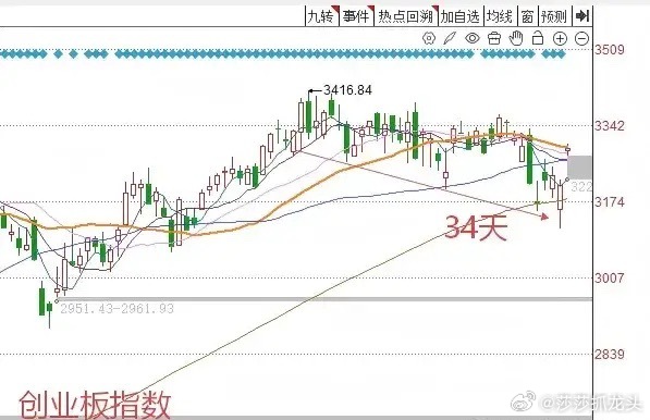 从技术面来看,创业板指数的这个缺口恰好又在日线级别高点到低点的第34天之后产生的,34是典型的斐波纳契编盘数字。所以恰恰好好,今天的这个跳空缺口也是符合斐波那契变盘时间窗口的。
