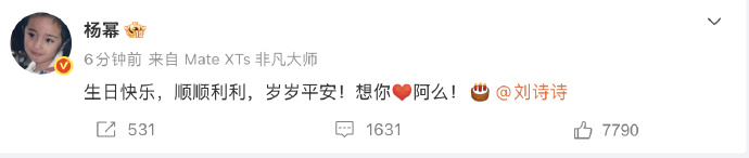 杨幂连续五年为刘诗诗庆生杨幂卡点1144为刘诗诗庆生 刚刚,发文为庆生:“生日快乐,顺顺利利,岁岁平安!想你阿么!”两位大美女友谊久久!