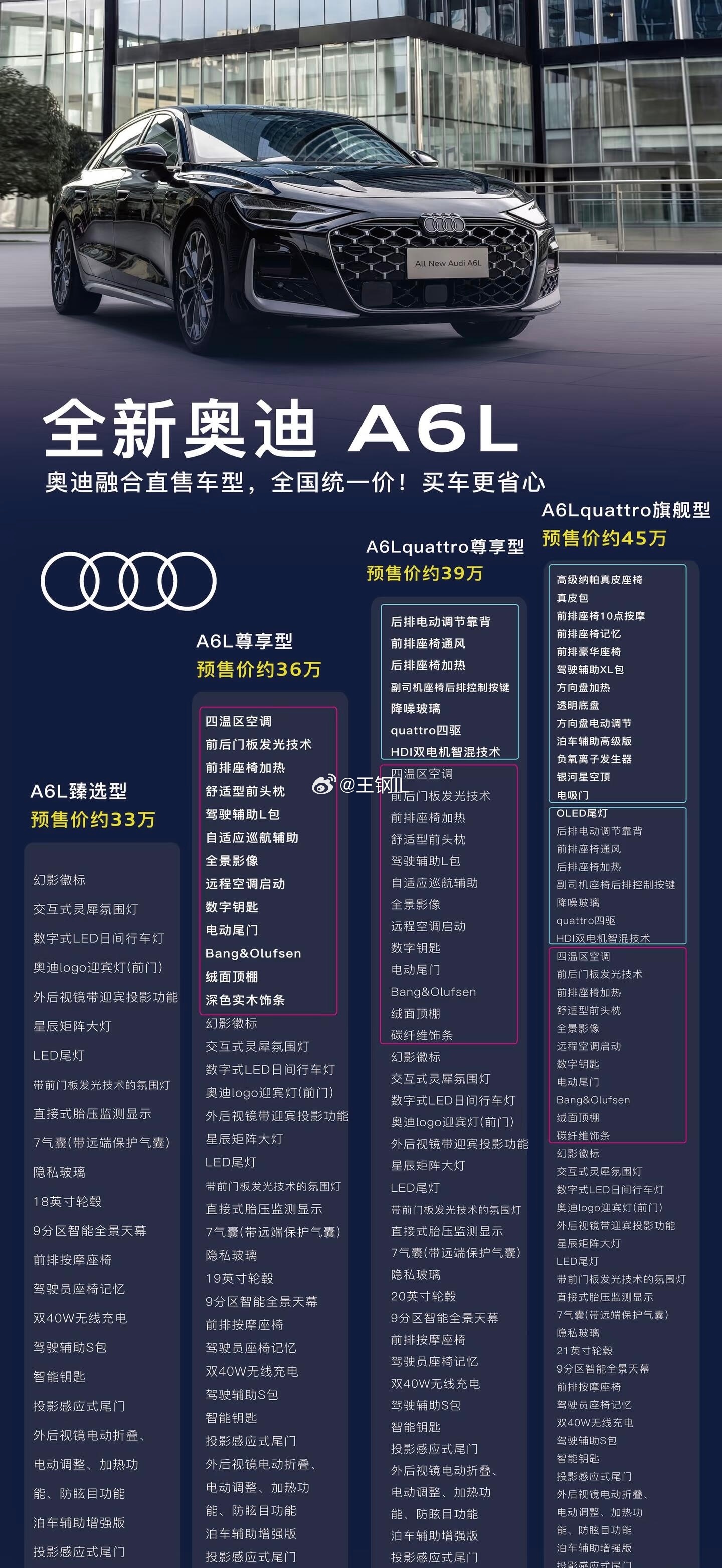 全新A6L预售开启了,预售价格可以呀,入门配置够用了奥迪a6l