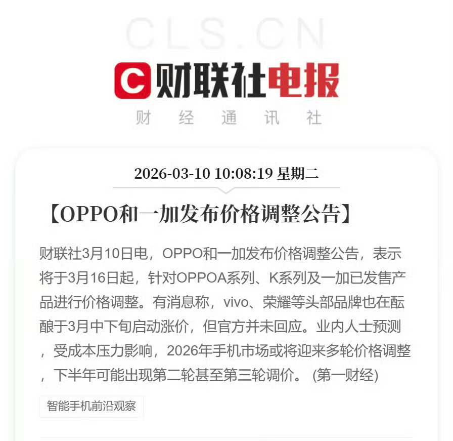手机行业要涨价了!而且今年可能要涨几轮?