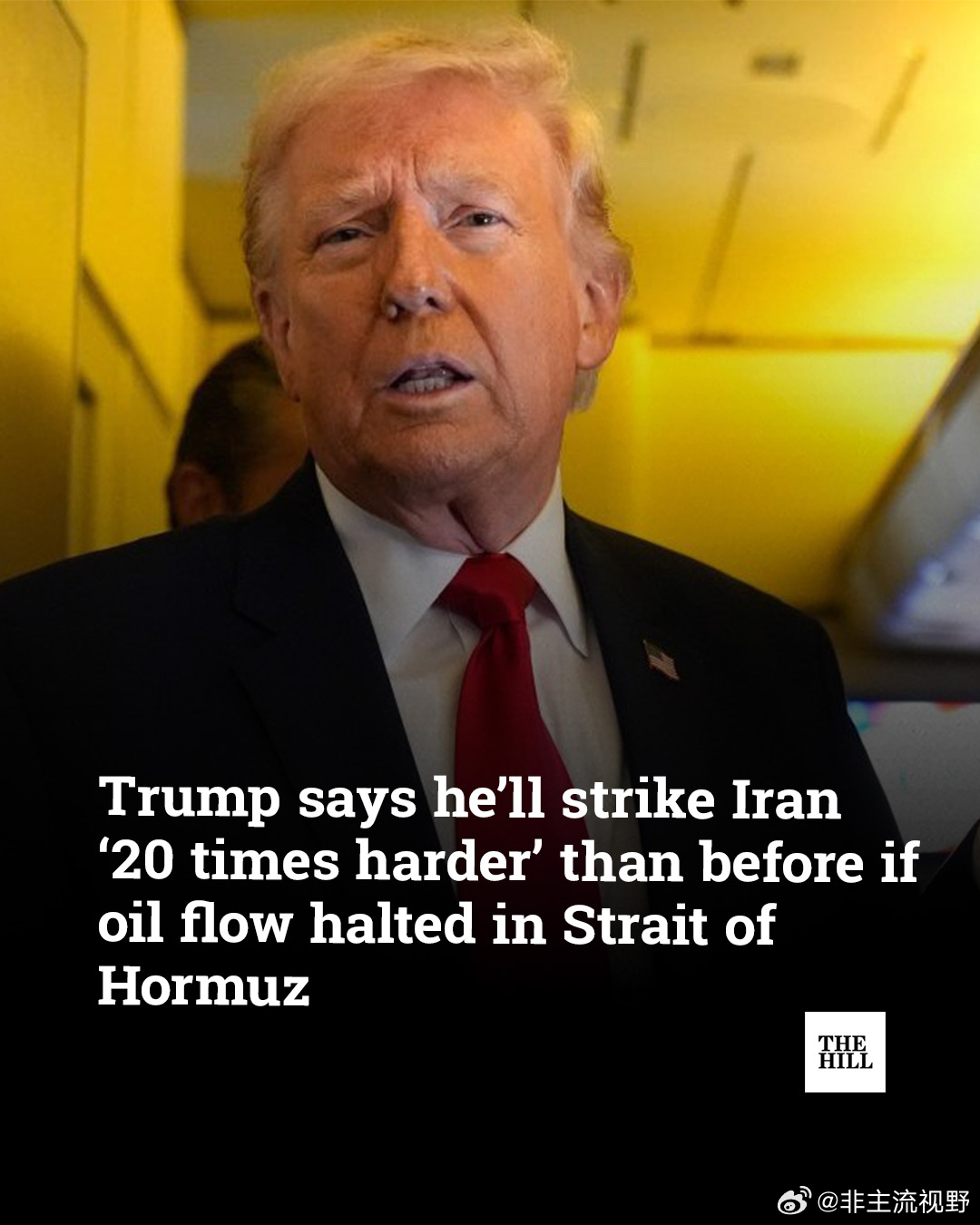 特朗普称若伊朗阻断霍尔木兹海峡美将猛烈打击 特朗普感受到了巨大的压力,赢逻辑遭遇挑战,又对伊朗发出恐吓,警告伊朗如果阻断霍尔木兹海峡的石油流动,打击强度将增加20倍!特朗普从来都是吹牛不打草稿,其实美军真的没有把打击能力增加20倍的能力。
