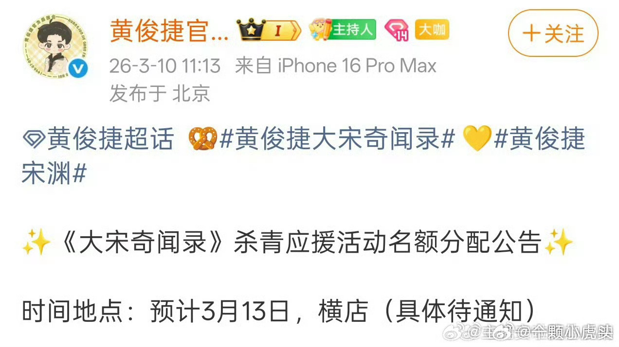 黄俊捷大宋奇闻录本周五杀青了,小黄一部部作品稳步前进!