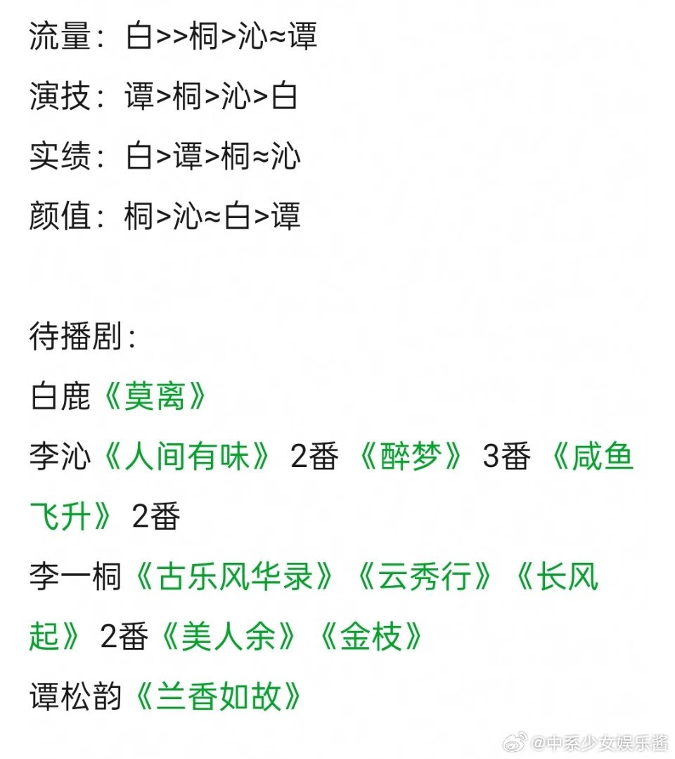 有网友说白鹿最开始是《逐玉》的女主角,因为🍍不想平番所以换成了田曦薇。番位问题