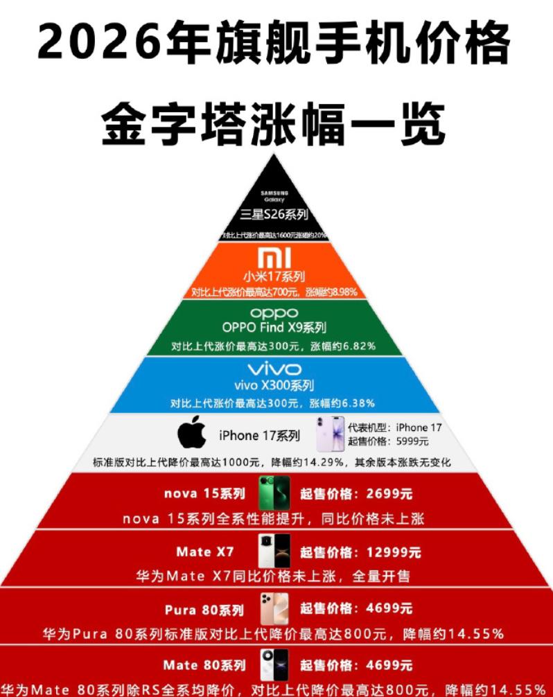 家人们快看!所有手机都在涨价,太坑了😭 没有例外! OPPO、一加已经官宣涨价。 vivo、荣耀、小米也在酝酿调价。 老款、新款一起涨! 涨幅最高能到两三千! 网友直接炸毛: “刚攒够钱,手机就涨价” “本来就换不起,这下更换不起了” 我太懂这种心情了! 但说实话,这次涨价,真不能怪手机厂商。 核心原因就一个:成本疯涨! 罪魁祸首,就是存储芯片! 以前的存储芯片,堪比白菜价。 现在呢?涨得比黄金还疯! 和去年比,采购成本涨了80%还多。 1TB闪存,从200多涨到近600元。 内存芯片,直接翻了两倍! 而且还在涨,根本没停的意思。 有人说,厂商不会自己扛吗? 真扛不住啊! 中低端手机,存储成本占比快30%。 有些千元机,已经亏着卖了😭 除了存储,还有一个原因。 全球都在卷AI,抢芯片产能。 手机能用的芯片变少,价格自然涨。 还有铜等原材料,也在涨价。 厂商也是被逼到绝境,才涨价。 有人问,华为、苹果怎么不涨? 人家利润高,能扛住成本压力。 甚至还能降价抢市场! 最惨的,还是咱们普通消费者。 想换手机,要么多花钱。 要么只能延长换机时间,凑合用。 更让人揪心的是,这波涨价还没到头。 预计3月后,涨幅会更离谱。 其实手机涨价,背后是整个行业的困境。 不是厂商想坑钱,是成本实在压不住。 但话说回来,涨价可以。 可别涨了价,还减配、降质量! 家人们,你们被手机涨价坑到了吗? 这次涨价,你能接受吗?评论区吐槽一波👇