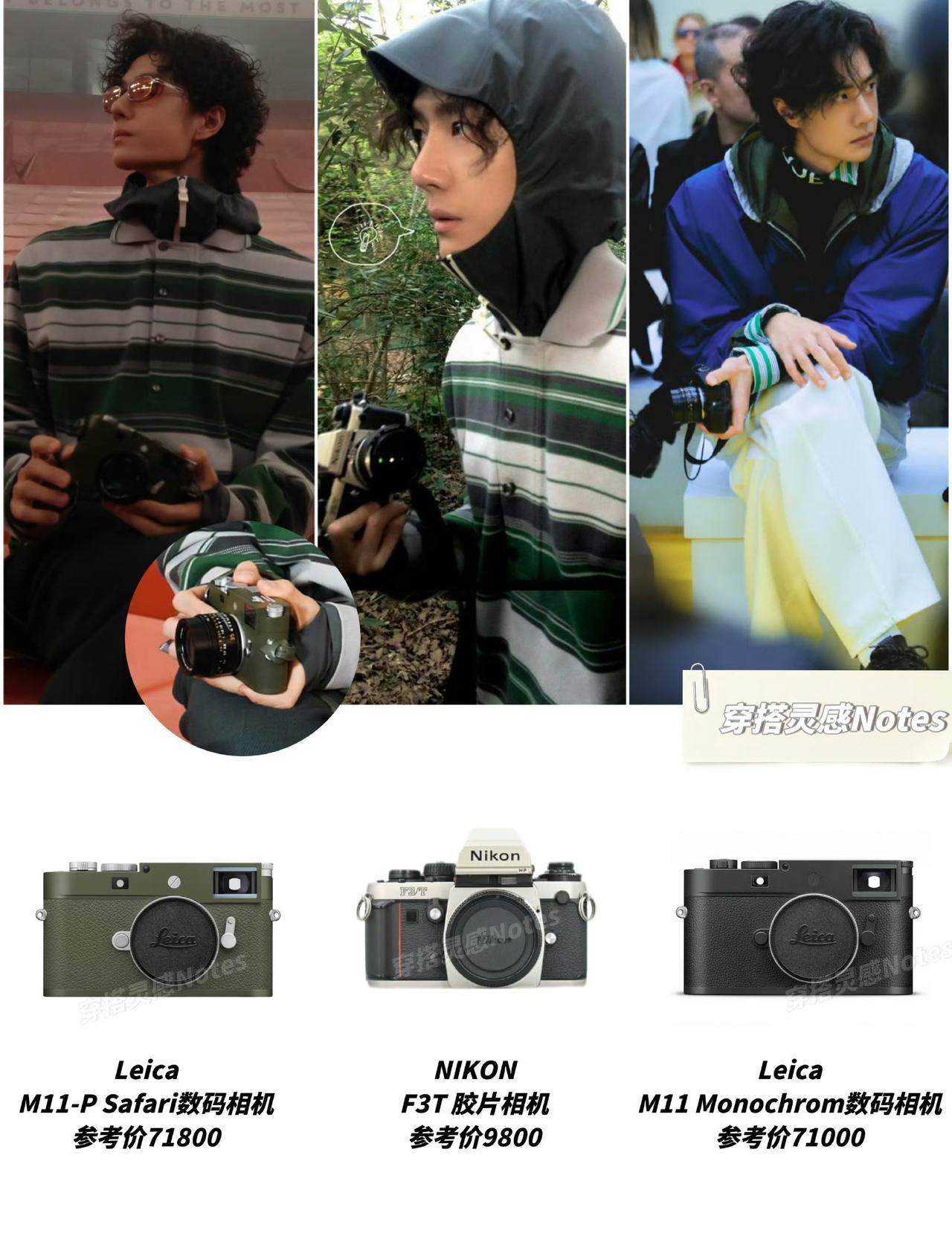 你敢信? 王一博在巴黎时装周连跑两场秀,换3台相机比换造型还勤! 罗意威秀场穿宝蓝机能外套叠军绿卫衣,手里攥着黑徕卡M11 Monochrom。 全程蹲T台边拍细节,碰杯时相机都没放桌上。 转场LACOSTE直接掏绿徕卡M11-P safari限量版,后来又摸出NIKON F3T胶片相机。 偶遇工作人员欢呼合影,他先举相机定格别人,才笑着凑过去。 不是把相机当摆拍道具的流量,而是用镜头藏热爱的玩家。 是对细节的死磕,是对风格的较真,是把每一次亮相都活成专属作品的偏执。