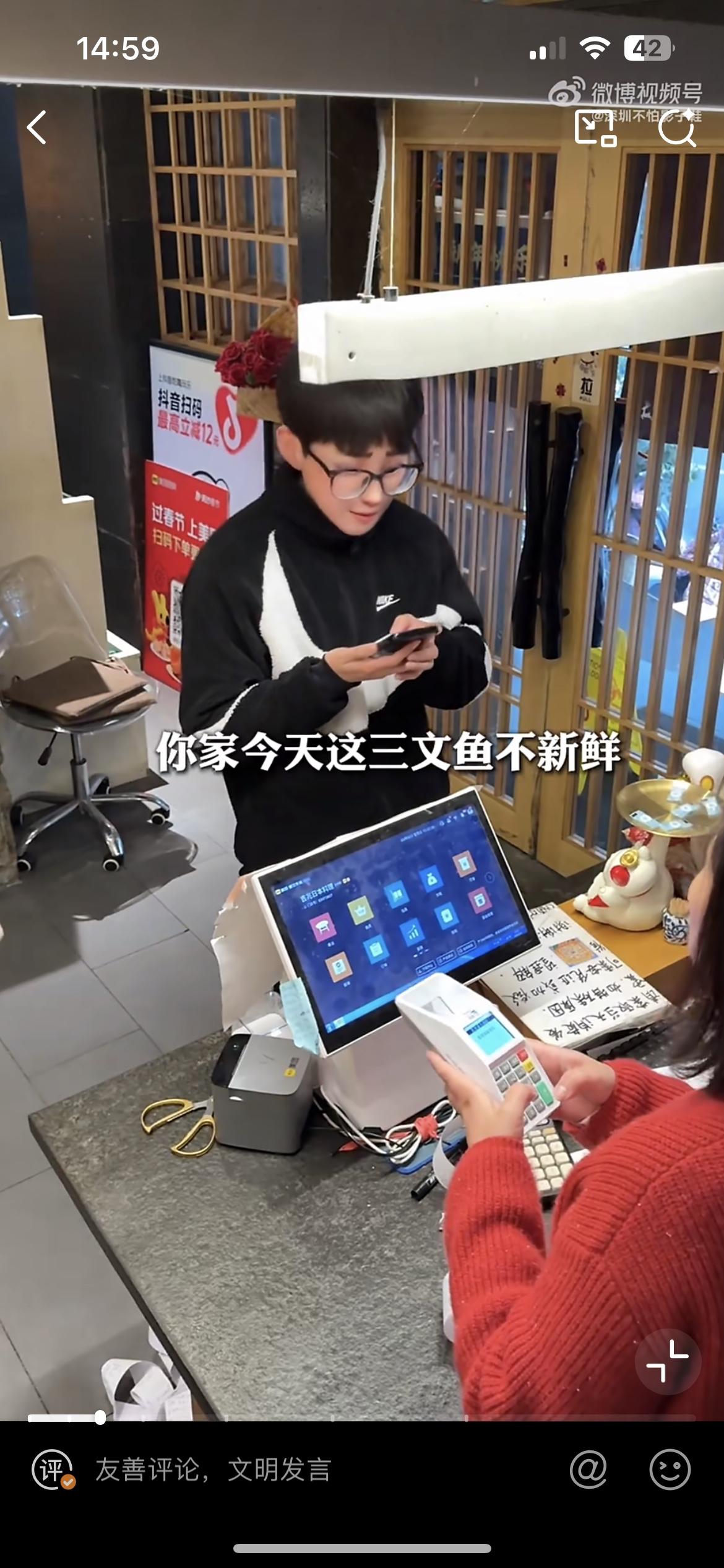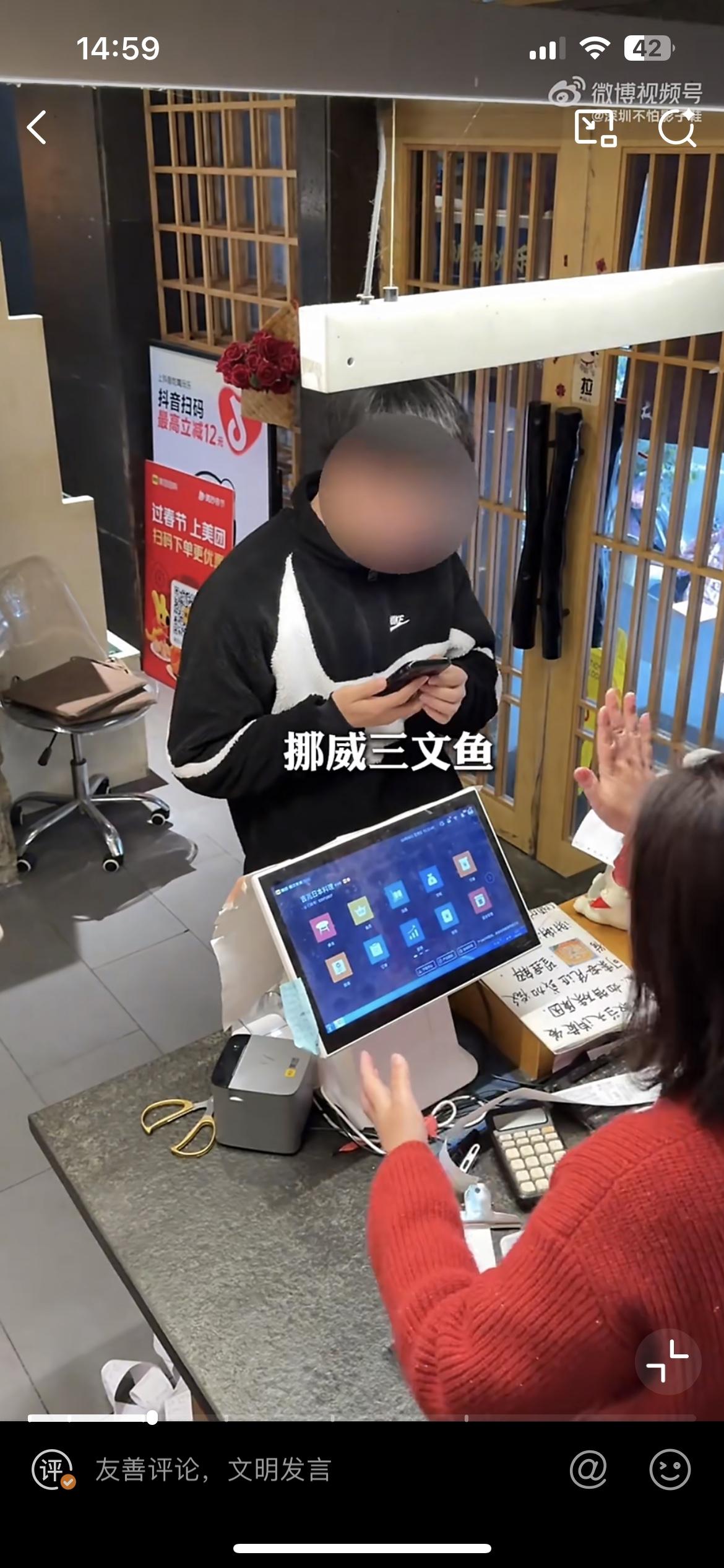 小仙男想白嫖278的海鲜自助餐,和老板娘说他的三文鱼不新鲜!小仙男吃了 278 块钱的海鲜自助餐,到前台付款的时候,和老板娘说他的三文鱼不新鲜,担心吃坏肚子,让老板娘免单,如果他去医院检查出了什么问题,可能费用更高,也不想找老板假一赔三,就把这单饭钱免了,大家两清。老板娘拉出小仙男吃的单子,他一共点了 170 份三文鱼,还有其他的虾贝等海鲜。老板娘说他的鱼都是新鲜现杀的,不可能不新鲜,今天顾客都坐满了,不可能存在问题。小仙男拿出手机拍视频,拍着拍着就溜出去了。