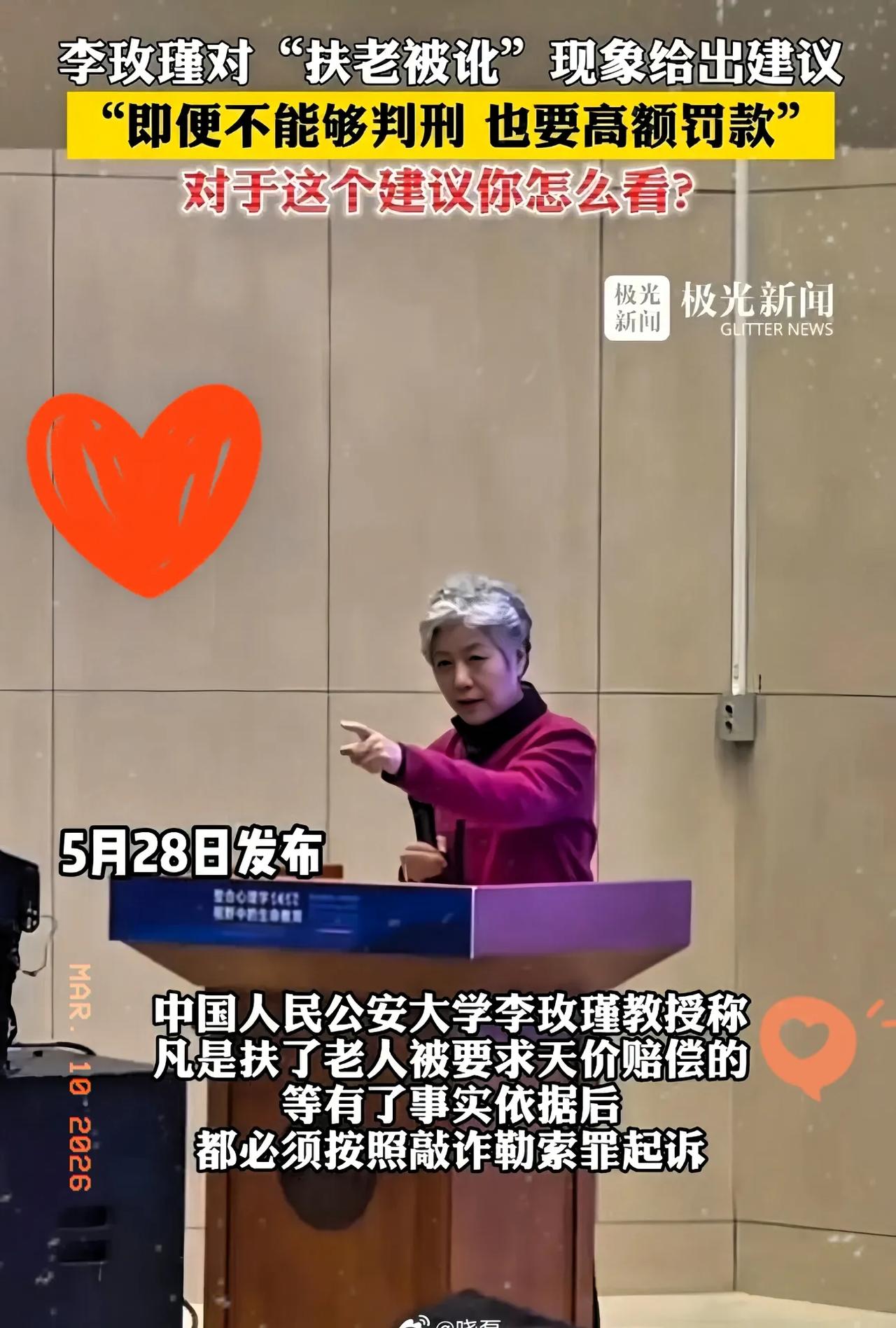 2024年,中国人民公安大学李玫瑾教授建议:好心人扶起老人反被索要天价赔偿,若对方拿不出任何证据,就应以敲诈勒索追责。即便达不到判刑标准,也要处以高额罚款,严厉打击恶意讹人行为。 李玫瑾教授这番建议真是说到了咱们的心缝里。 她提议凡是扶了老人被讹天价赔偿的,只要对方拿不出证据,直接按“敲诈勒索”起诉,不判刑也得高额罚款。 这话听着是真解气! 咱们这些年被“扶不扶”这事儿伤得太深了。 就拿江西那个17岁小伙子来说,好心扶人反被扇巴掌,家属还张口就要钱。 监控还了清白,可对方也就是轻飘飘一句“对不起”。 凭什么好人非得费死劲找监控自证,坏人却一点代价都没有? 这种“谁弱谁有理”的风气早该变变了。 我觉得,这下总算有人站出来提倡让讹人者“肉疼”了。 非得把这帮人的讹人成本提上去,大家出门才敢放心伸手。 要不然,光靠嘴上喊喊正能量,谁敢拿全家老小的生活去赌那份善心? 有网友说,等得太久了!终于等到你发声了!发出对这类人惩罚的声音了!为了恢复中国社会的良好民风和社会道德!特别给你:李玫瑾点赞!再点赞! 也有人说,赞成李教授的建议,希望立法保护善举,鼓励见义勇为者。 还有人说,这是最好的立法建议,惩恶扬善才是正道,不严惩敲诈勒索者,就不会有见义勇为,乐施善心,的好风气! 各位读者朋友大家怎么看?欢迎在评论区留言讨论!