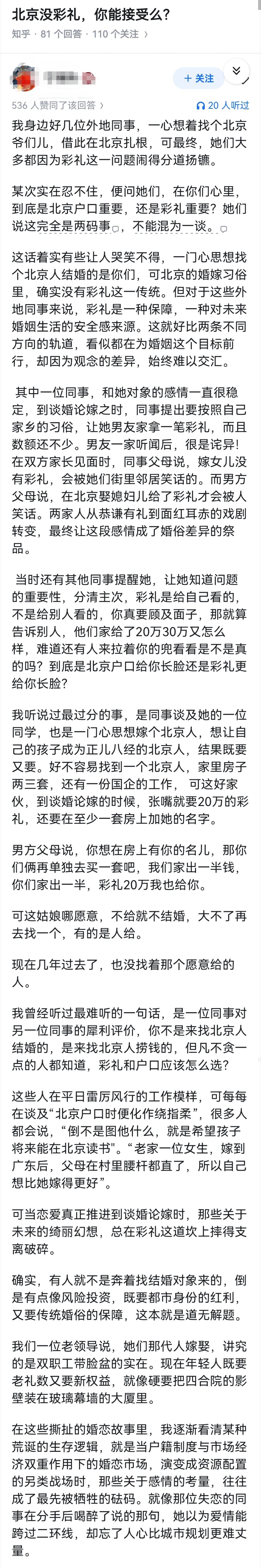北京没彩礼,你能接受么?