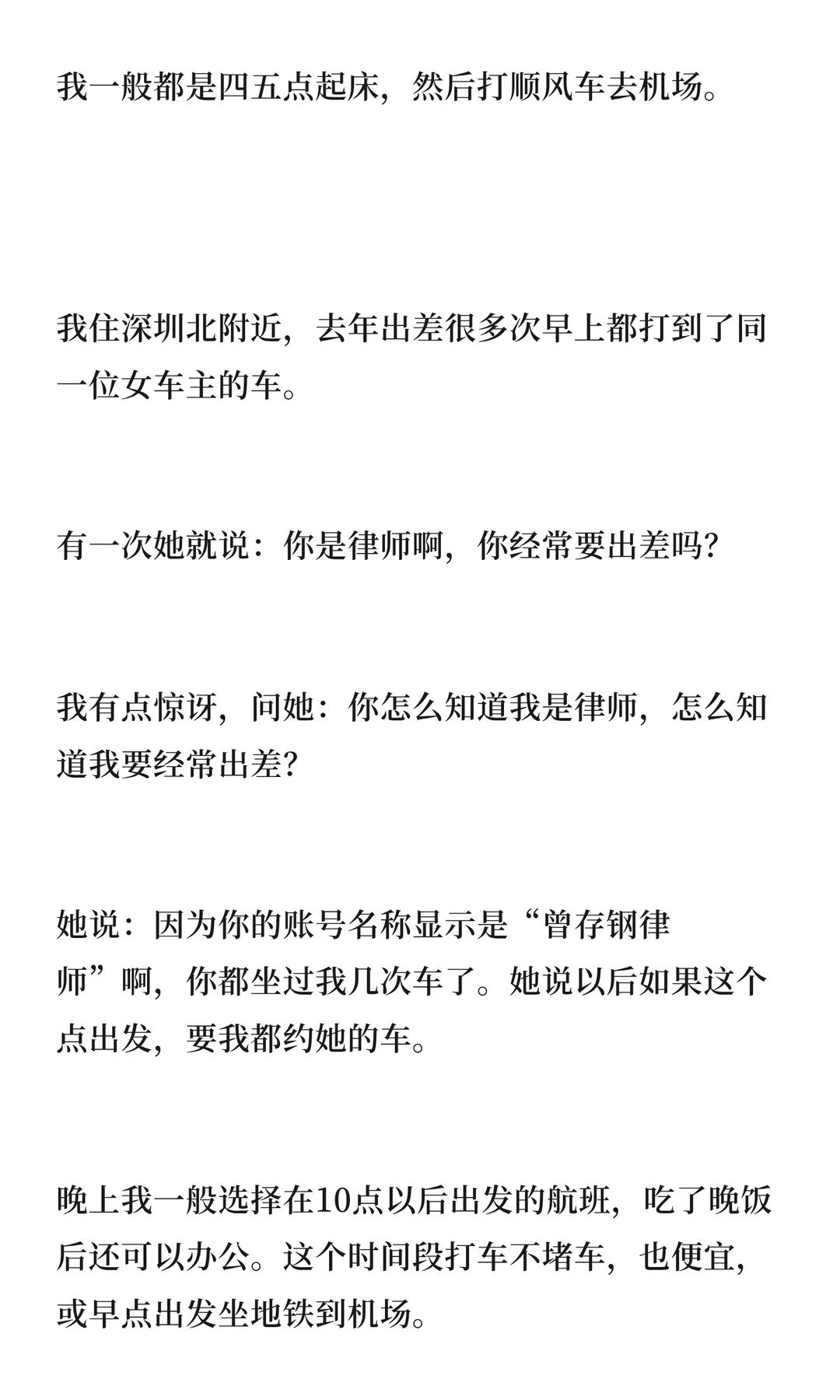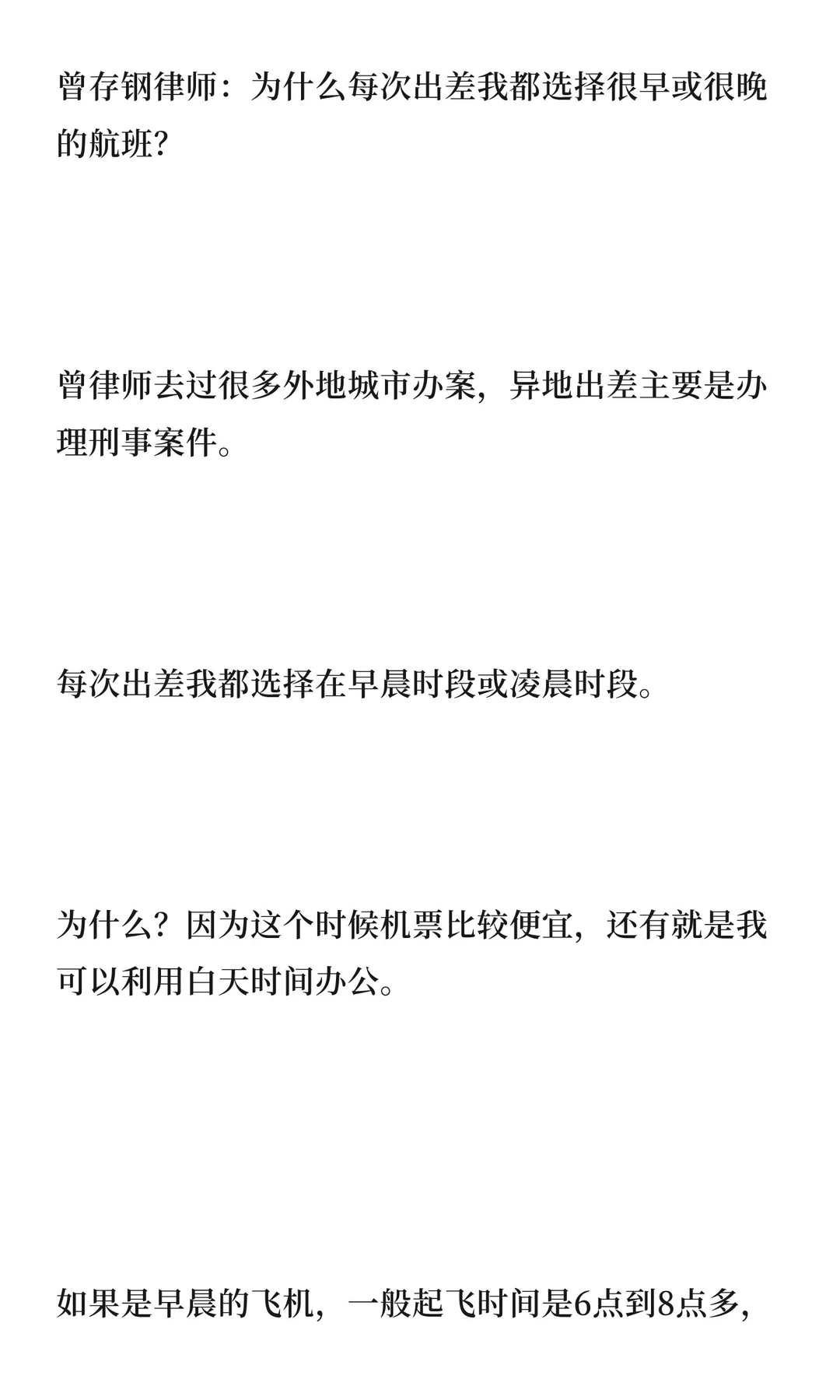 曾存钢律师:为什么每次出差我都选择很早或很晚的航班?