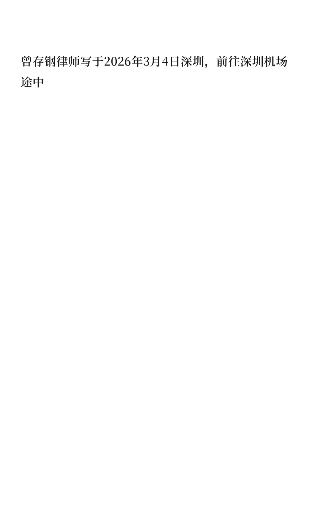曾存钢律师写于2026年3月4日深圳,前往深圳机场途中