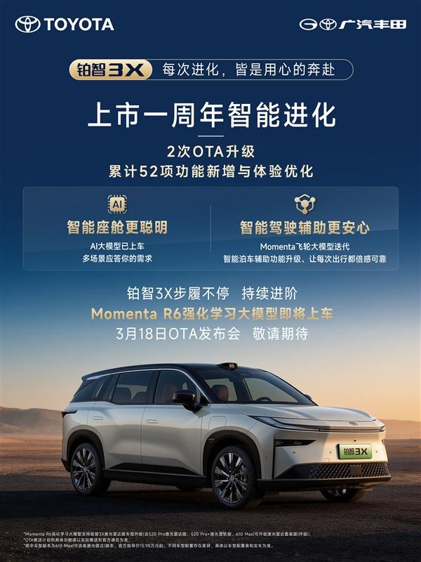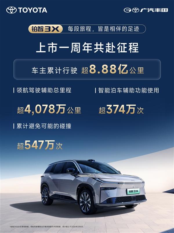 【合资新能源销冠!铂智3X年交付破8万辆】近日,汽车焦点从广汽丰田官方处获悉,铂智3X上市一周年累计交付超过80000辆,并且这款产品已经连续5个月蝉联合资新能源销冠,是当之无愧的合资纯电黑马。此外,官方数据还显示,铂智3X车主累计行驶里程超过8.88亿公里,全场景领航驾驶辅助总里程超过4078万公里,智能泊车辅助功能使用374万次,可见铂智3X的车主对于辅助驾驶的使用率是相当之高的。 其实铂智3X的热销早就有迹可循,作为一款限时9.98万元起售的合资纯电SUV,铂智3X在价格这一块就具备十足的吸引力,并且设计上也非常符合家庭用户对于大空间的需求,2765毫米的轴距表现加上宽敞的后备箱空间,摆放各种大件物品都是相当轻松。 至于在动力方面,铂智3X提供最大功率150千瓦以及165千瓦的驱动电机给到用户选择,纯电续航里程分别为430公里、520公里以及610公里。而最关键的是铂智3X还把激光雷达以及高阶辅助驾驶系统下放到14万元内,横向对比同级别的合资纯电,各位就知道这性价比有多高了。 值得一提的是,在3月18日铂智3X还将进行OTA发布会,Momenta R6强化学习大模型即将上车,各位也不妨期待一下这款合资纯电2026年的表现。【来自懂车帝车友圈】
