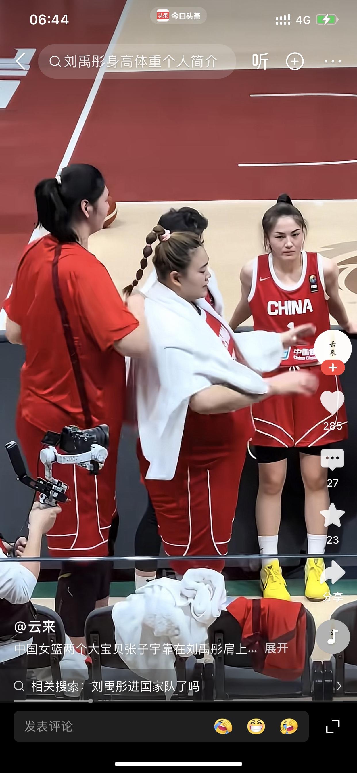 张子宇在队内少个大姐姐做“支撑”😂 这个大姐姐便是刘禹彤哈哈! 当然,我开头的那句话是开个玩笑,主要是因为张子宇在热身赛时,有时在替补席会利用刘禹彤这个大姐姐的体格而做一些自己作为一个刚成年的孩子一般喜欢做的某个行为,具体的请看下面截图 而如今刘禹彤没有被选入中国女篮国家队最终的正式名单 那么等正式比赛之后,张子宇要想继续像下图这样找个姐姐来给自己做“支撑”,恐怕也只有李月汝了,不然就有两个大姐姐给她换着来😂