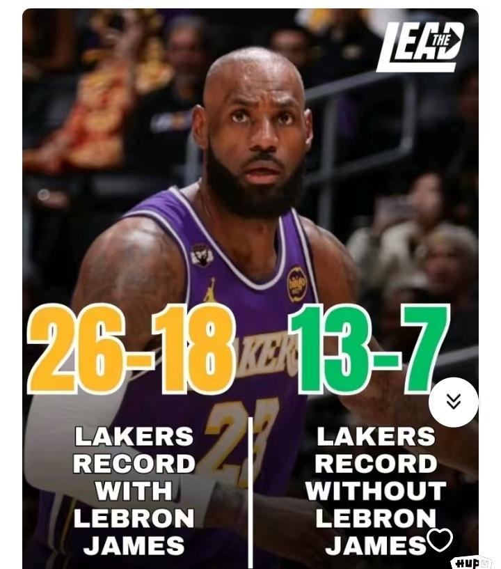 詹姆斯太可怜了,出不出战都被盯着。 他在场湖人26胜18负。 他受伤不在湖人13胜7负。 我寻思这个成绩不差不多嘛! 至少詹姆斯还是一位巨星,湖人的主力进攻点吧…[大金牙]