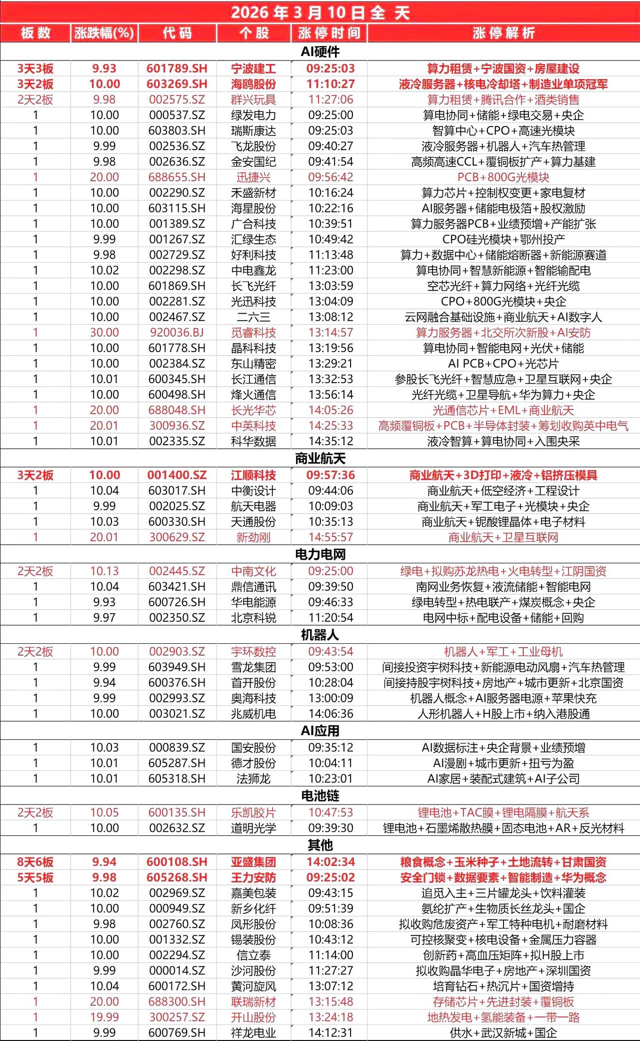 3月10日, 全天封板复盘。