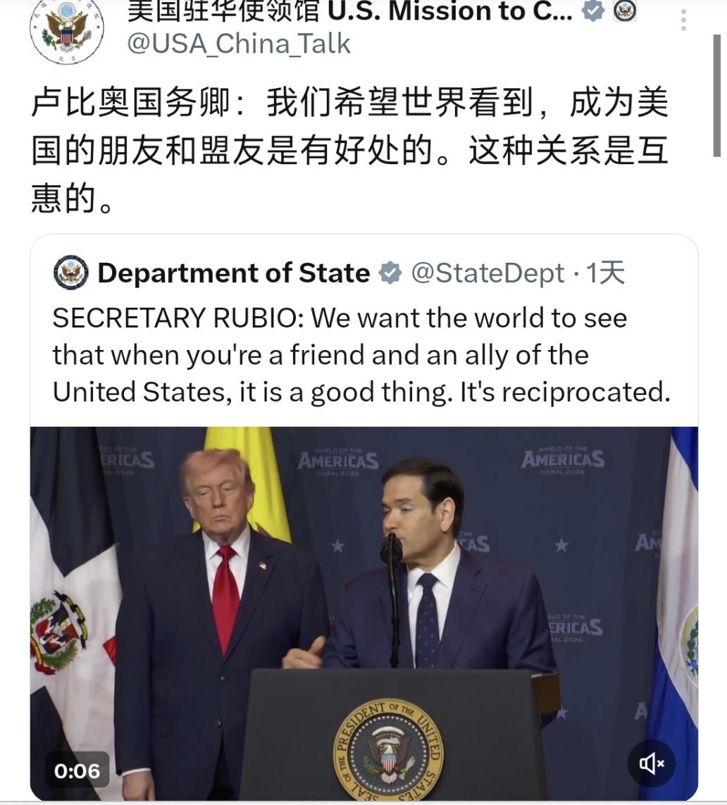 美国国务卿卢比奥表示,美国希望各个国家能看见跟美国合作的好处,跟美国合作是平等互惠的。 这句话放在以前还能骗骗那些国家,但是美伊以战争爆发之后,这句话真的成为了笑话。 本来这些中东国家以为自己家里有美军基地安全就会得到保证,结果就是因为有美军基地才会让自己的安全没有保证,伊朗的打击就是一个例子。 还有那些美国最重要的盟友欧盟,他们本以为靠着美国能吃香喝辣,结果美国没钱了,第一个收税的就是他们,要钱不行还要地,格陵兰岛都要抢,说是跟着美国有好处,好处就是所有盟友,都得去进贡几千万美元。 基辛格曾经说过,成为美国的敌人是危险的,但是成为美国的盟友是致命的,这句话在特朗普的身上展现出来了。 不知道大家有什么看法,评论区聊聊。
