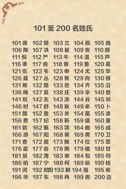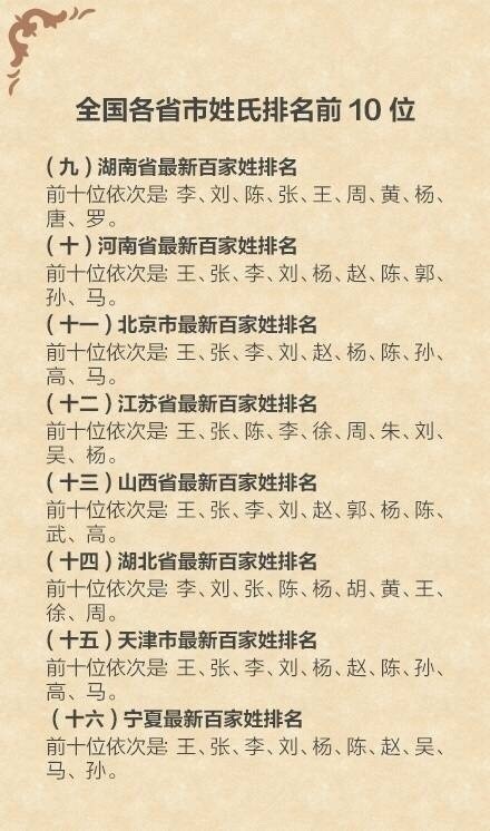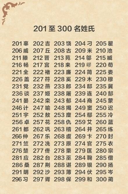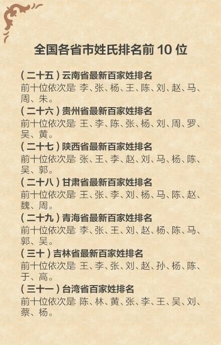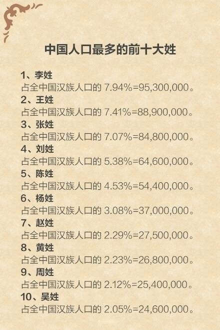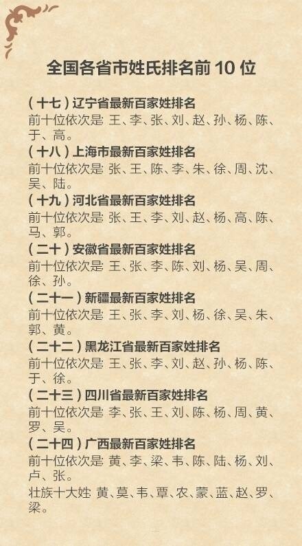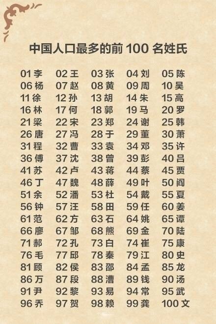 中国最新姓氏排名: