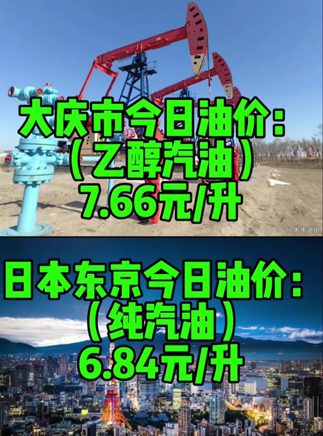 大庆市今日油价7.66元/升,日本东京今日油价6.84元/升,油价对比!