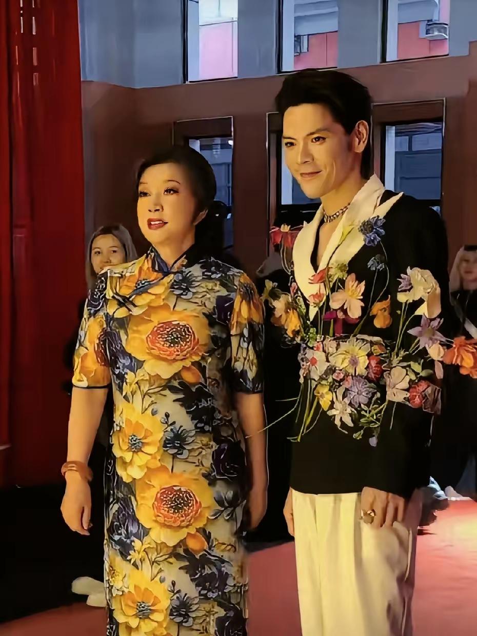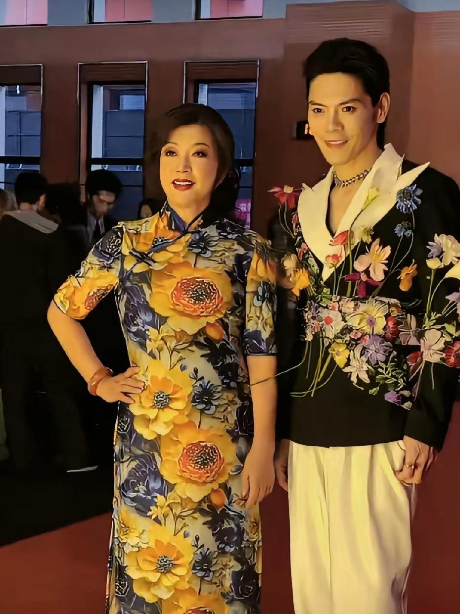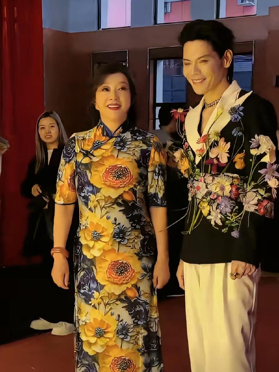 向佐和刘晓庆同框直接炸屏! 向佐刘晓庆同同框出席活动打扮太亮眼!75岁刘晓庆身穿鲜艳花色旗袍,化着精致的的妆容,打扮得优雅贵气,气质不凡!真是令人佩服! 向佐打扮得更扎眼,黑色西服注入白色领口,腰间插满了鲜艳的花朵,下搭白色裤子,留着个性的发型,这造型真的是太有创意,他们二人同框画面还挺好看,这衣服搭配的真是太绝了!真是鲜艳夺目,亮丽迷人!