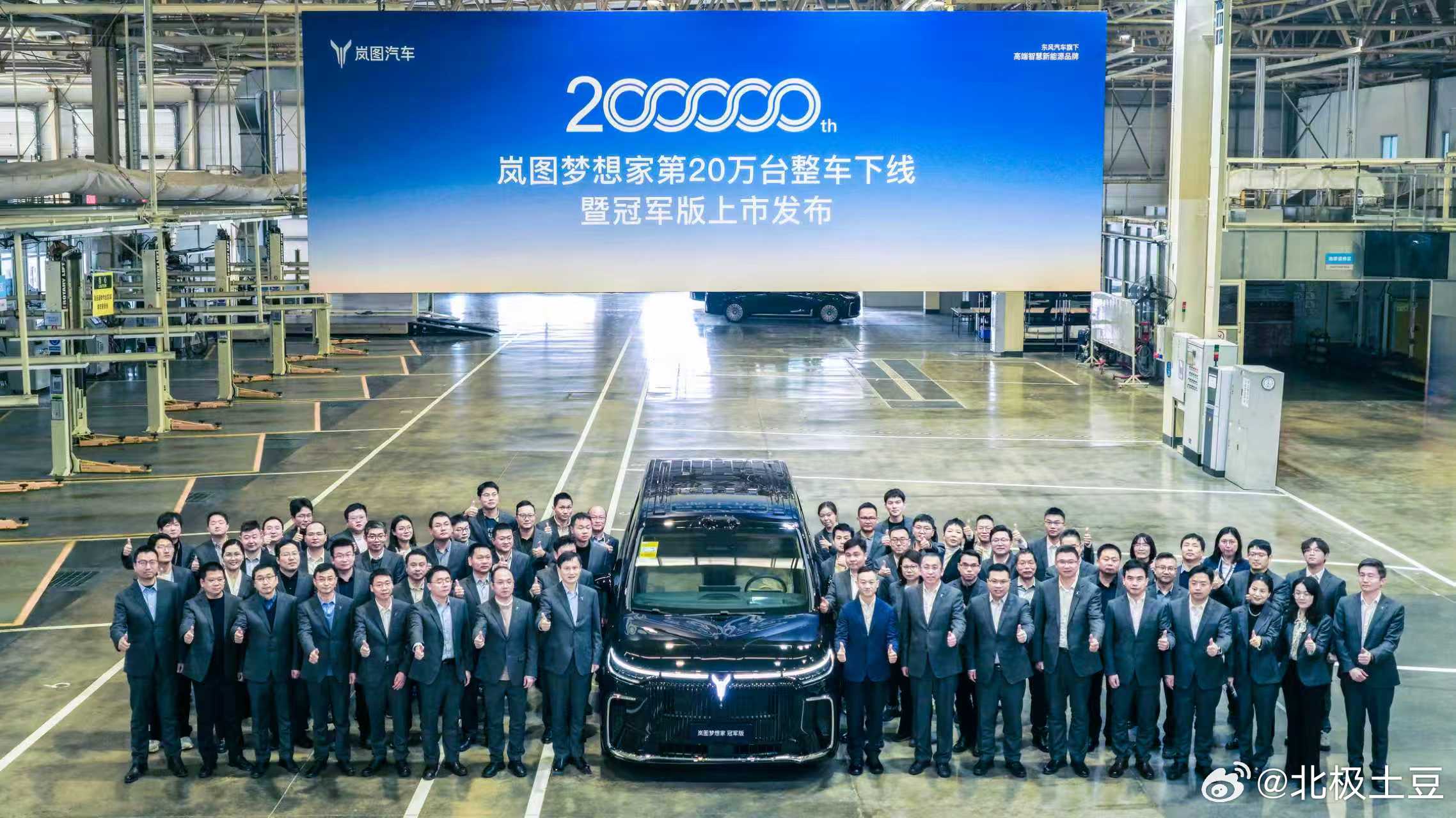 岚图梦想家第 20 万辆整车在武汉黄金工厂正式下线!