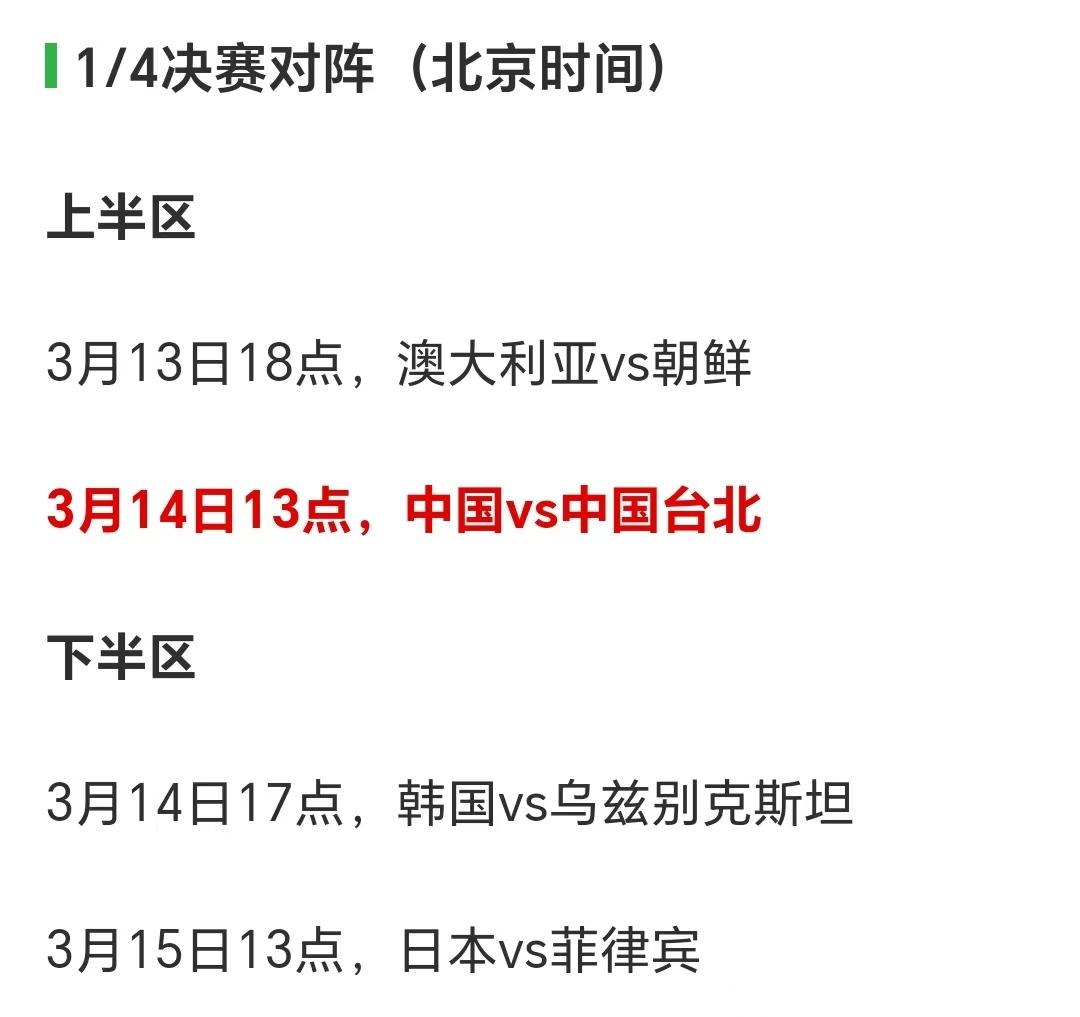 女足亚洲杯1/4决赛对阵出炉,中国女足1/4决赛对手是中国台北女足,对手实力相当弱,中国女足过去26次和中国台北女足交手,保持全胜共进87球仅仅丢了2球,所以中国女足实际上已经稳稳获得一个4强名额了,如果女足能进4强,接下来半决赛的对手将会对阵澳大利亚和朝鲜之间的胜者,大概率是澳大利亚,而下半区是韩国踢乌兹别克斯坦,日本踢菲律宾,所以下半区半决赛对决大概率是韩国踢日本,所以如果女足能够闯过澳大利亚进军决赛,那么对手就是韩日之间的胜者,不管踢谁难度都不小,所以中国女足想要成功卫冕,还需要经历两场难度比较大的比赛才能再次夺得本届女足亚洲杯的冠军!