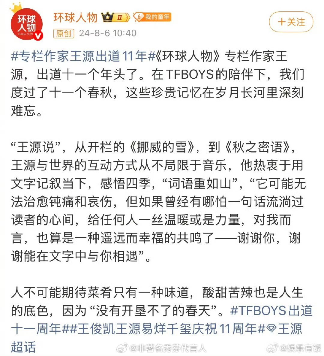 原来这些爆火的文案都是王源写的环球人物六年专栏作家 王源实力没得说