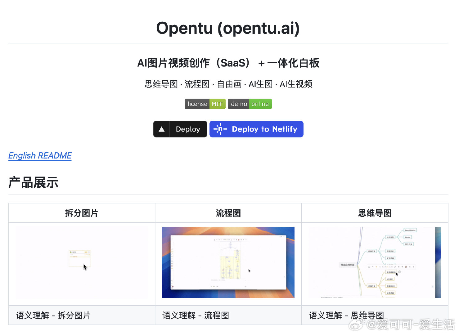 开源项目 Opentu (aitu),集成 AI 图片生成、多模型视频创作,内置白板支持思维导图、流程图和自由绘画,Markdown/Mermaid 快速转图形,批量任务队列管理,还支持多种格式导出。