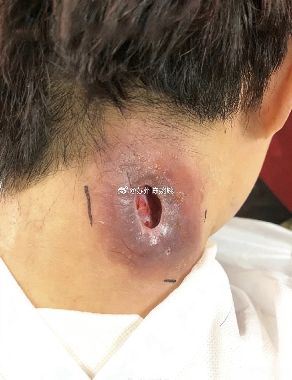 这里有个经验,硬的时候还不能切,切了疼还切不干净。等摸着软了、有波动感(像水袋那种感觉),说明里面脓成了,这时候才能切。