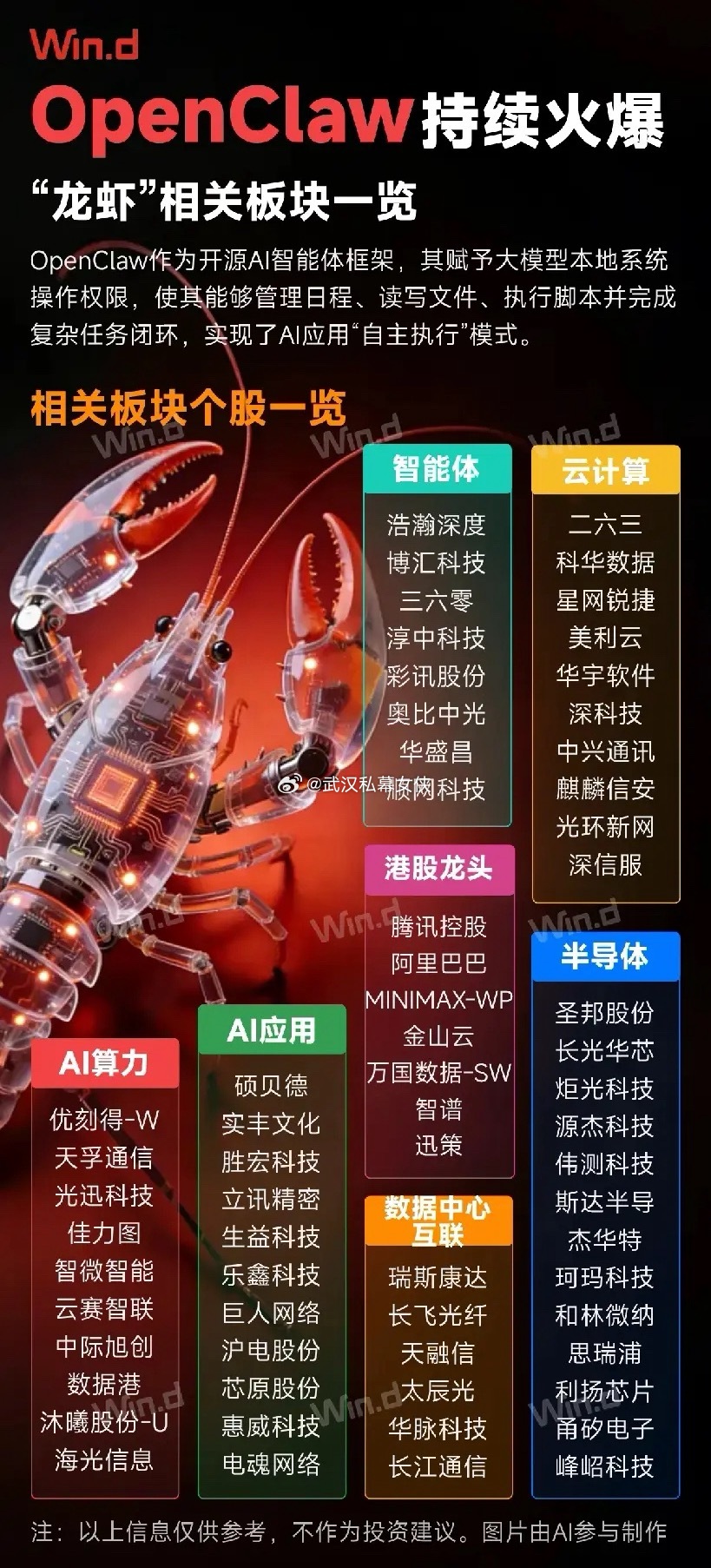这两天“养龙虾”彻底火了,在A股港股也爆炒。大A主要是国产算力硬件,算力租赁、A