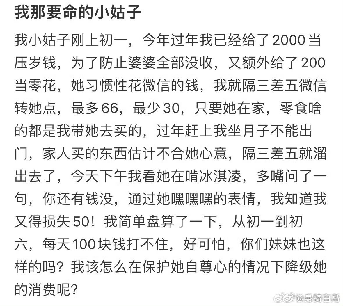 要怎么给小姑子消费降级呢我觉得自己的消费严重降级