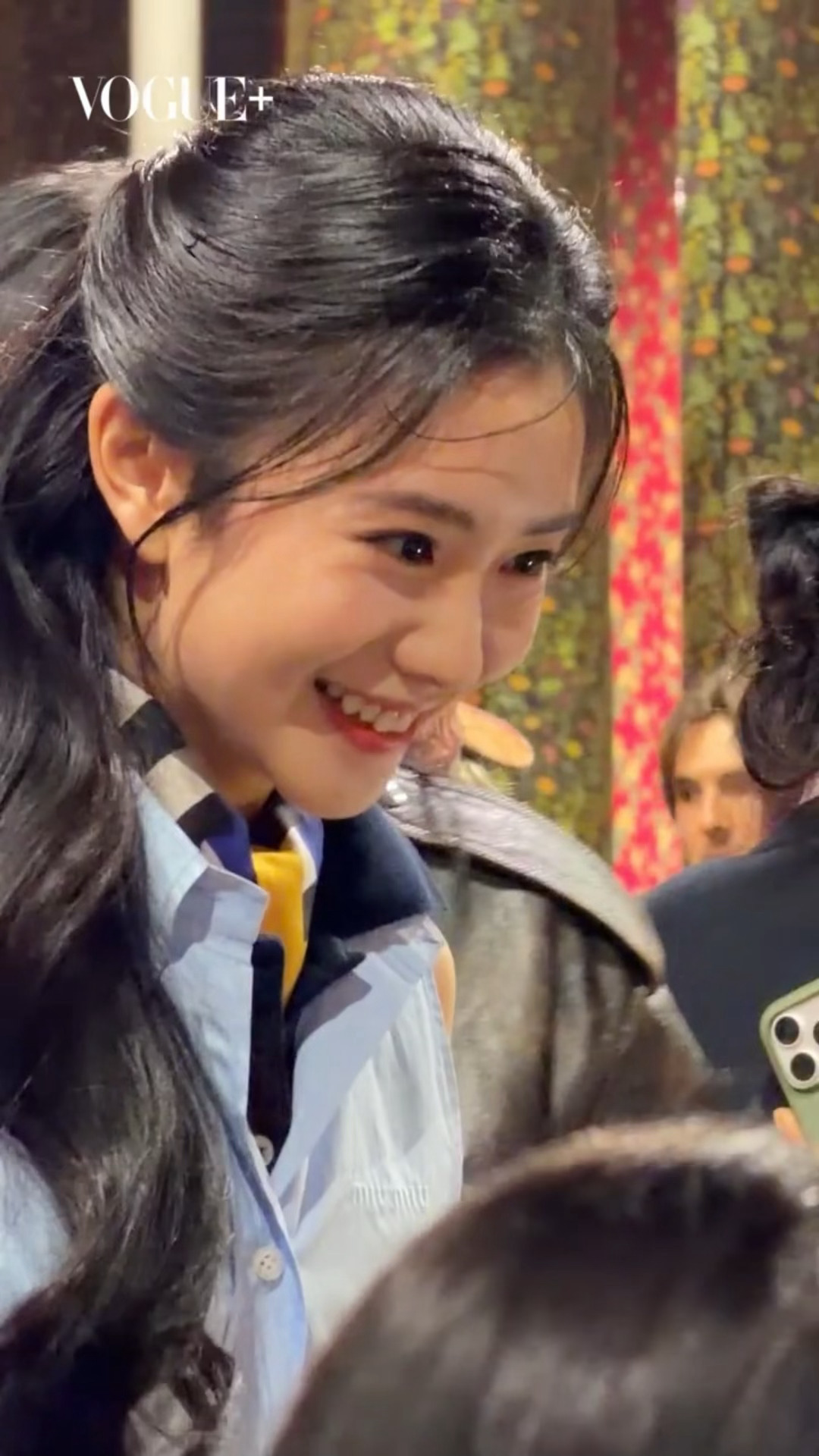 这个眼睛亮亮的存儿好美好萌哦拍照的时候更是完全女神刘浩存时装周蓝裙造型刘浩存看秀
