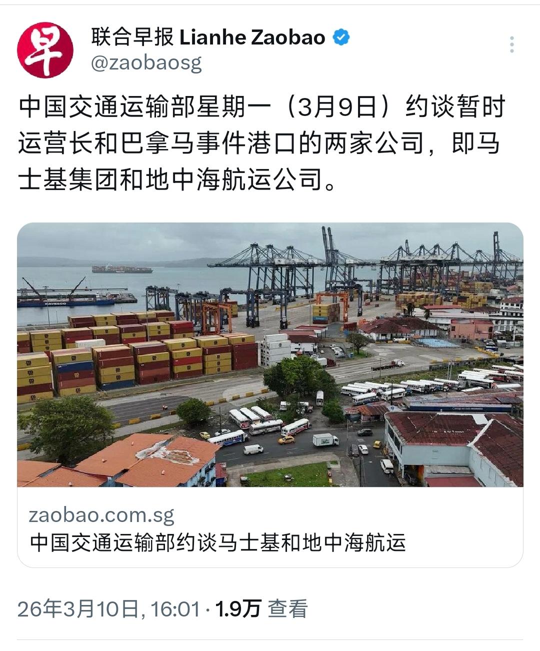 新加坡联合早报今天(3月10日)报道:“中国交通运输部星期一(3月9日)约谈暂时运营长和巴拿马事件港口的两家公司,即马士基集团和地中海航运公司。” [机智]评几句:敢接手就应该想到后果。巴拿马政府的帐要算,敢参与的企业也要算。不服气就试试世界第二经济体的能力!中国交通部约谈马士基与地中海航运,正是向所有趁火打劫者划出清晰红线。巴拿马背信弃义撕毁合约强夺中资港口,两大航运巨头却火速接手临时运营,看似捡了便宜,实则触碰了中国维护企业合法权益的底线。这场约谈绝非简单警告,更是精准反制,既敲打了无良企业的短视行为,也彰显中方维权的坚定决心。任何妄图在中资权益受损时浑水摸鱼的势力,都必将为自己的选择付出惨痛代价,中国从不会纵容任何损害本国企业利益的行径。