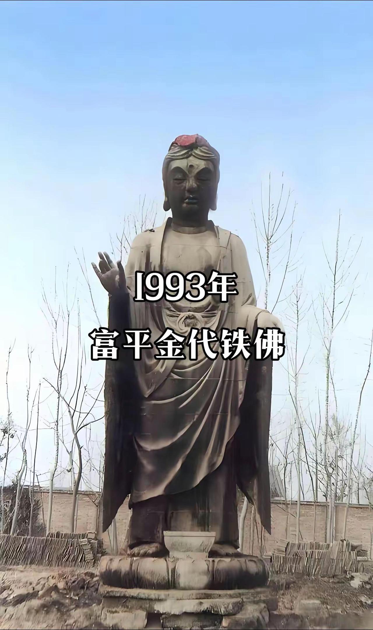 正月廿三,赴一场富平百年之约。又是一年正月廿三,富平铁佛寺庙会,如期而至。作为富平西乡传承几百年的古庙会,承载着一代又一代人的记忆。 1992年,铁佛寺被列为陕西省重点文物保护单位,随后启动大殿重修。图二、图三,记录的就是金代铁佛在大殿修缮期间,临时安置在室外田野的样子。 1993年大殿完工,铁佛重回殿内。近年,当地更是投资1500万,修建铁佛寺遗址公园,让这尊千年铁佛,得到更好的保护与传承。 一座古佛,一段岁月,见证富平百年变迁。