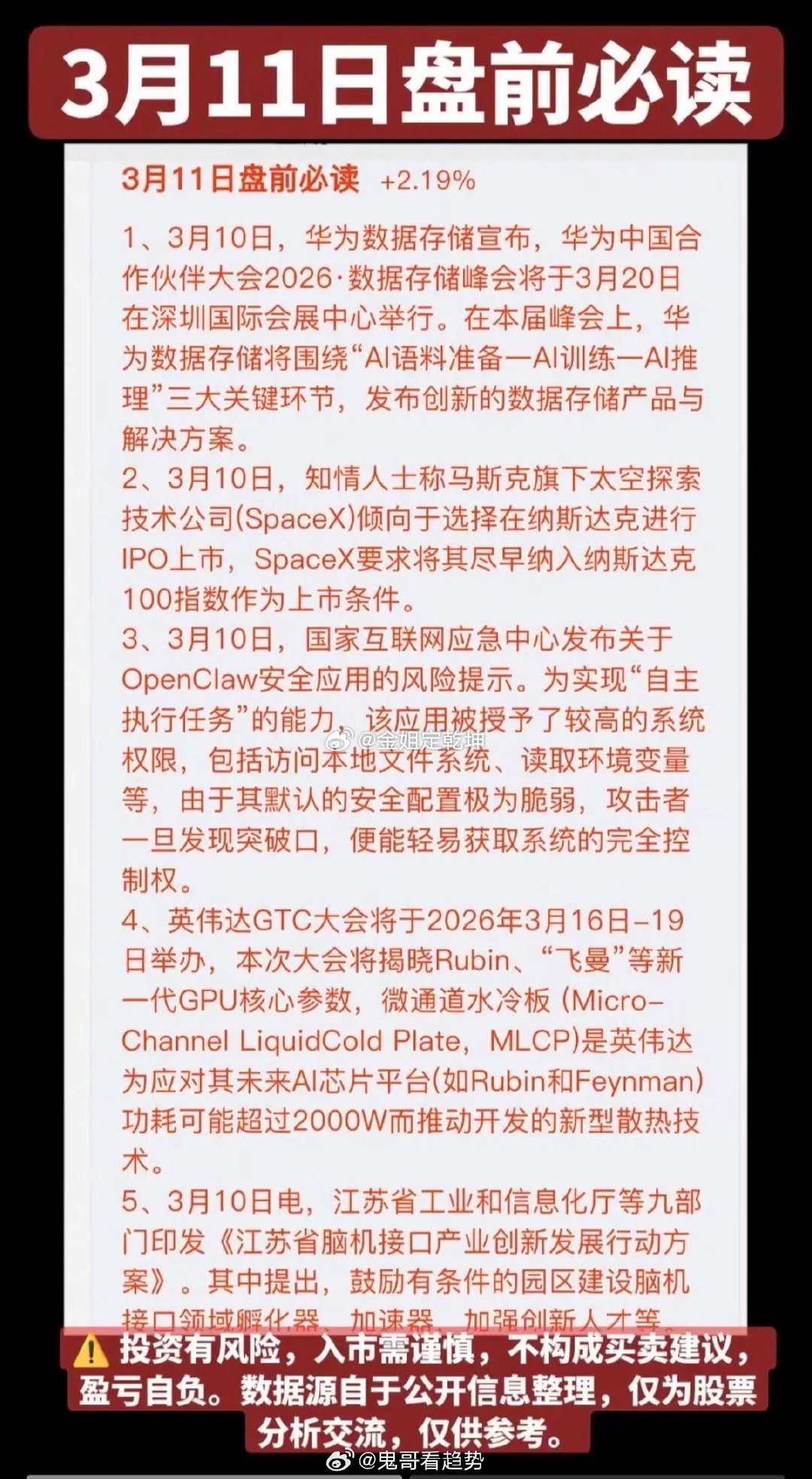 1.华为AI推理——存储2.SpaceX3.OpenClaw4.英伟达MLCP5.脑机接口
